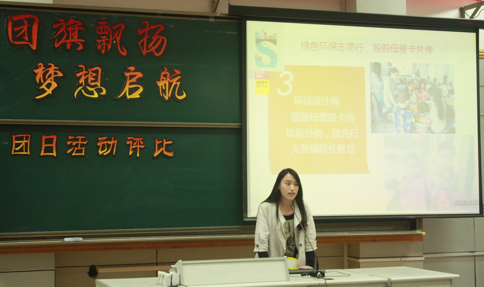 5月3号晚6点,理学院“团旗飘扬,梦想起航“年度优秀团日活动评比大赛在E楼201举行。2010级至2012级24个团支部全部参与此次活动,理学院团委老师担任评委。