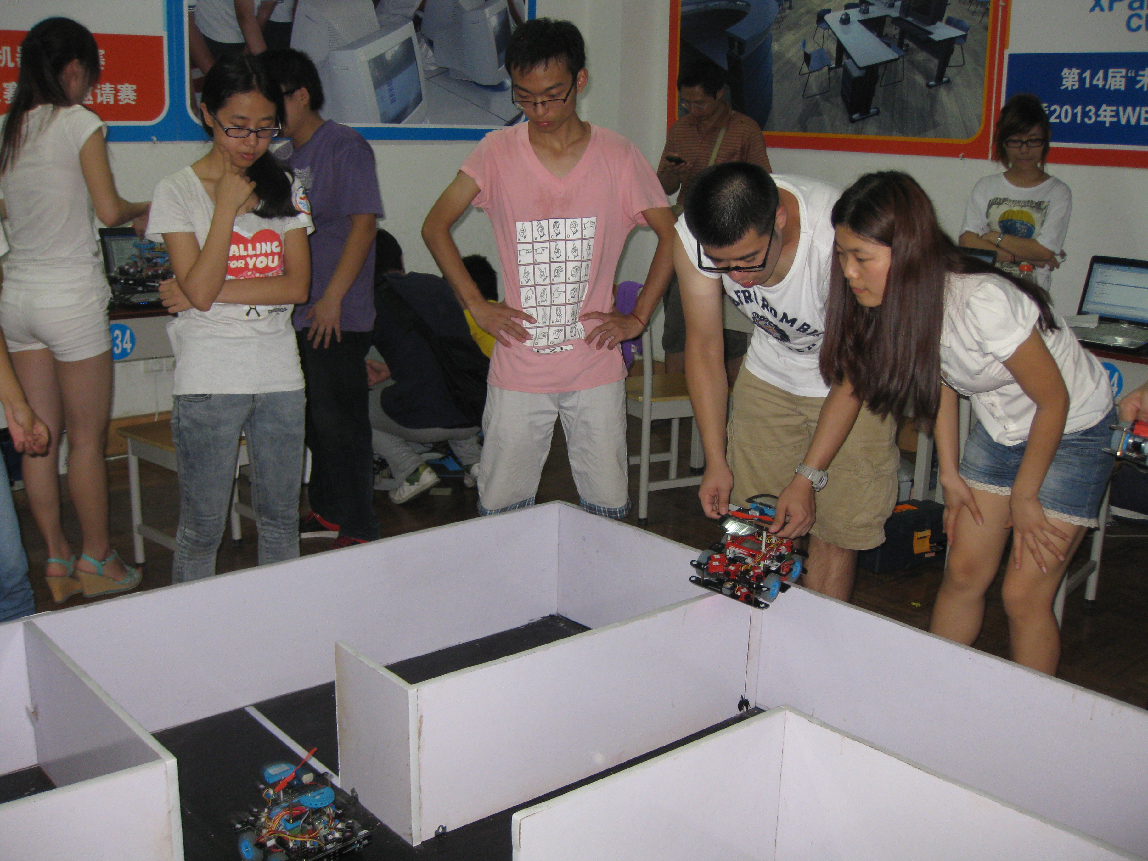 据悉,为期三天的第14届“未来伙伴杯”中国智能机器人大赛暨2013年WER世界教育机器人大赛国际邀请赛由洛阳师范学院与上海未来伙伴机器人有限公司共同承办,来自北京、上海、广东等17个省(直辖市、自治区)的1000余名学生参加了比赛,1000余个智能机器人摆开擂台“比武”。灭火机器人由来自美国的机器人专家Jake Mendelssohn在1994年创立,如今这个比赛项目已成为目前世界上影响最大的机器人竞赛项目之一。