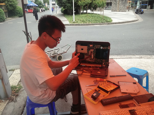 中午12点,电子DIY的成员们纷纷赶到活动现场忙碌起来,为义务维修活动做足准备。活动伊始,许多人便带着需要维修的电脑前来登记。随后,上前咨询、维修的人更是络绎不绝。协会的维修人员认真倾听同学们的问题,并为他们详细解答,尽自己最大的能力去帮助他们。由于现场维修任务较为繁重,社团技术人员有限,他们显得有些力不从心。尽管如此,许多业余人员在维修人员旁边积极地打下手,在咨询处回答疑问、为活动现场维持秩序,一切显得井井有条。此外,很多同学是带着电脑来除尘的,但除尘所用时间较长,而义务维修活动的时间只持续到两点半,维修人员便留在现场继续清理电脑,尽力帮助同学们解决问题。