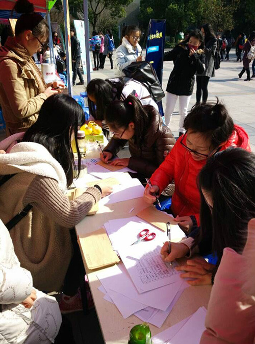 为了使同学们能够更加深入地了解感恩节这一节日背后的真正含义,帮助同学们在校园内传递感恩的情感,将感恩的祝福传递给父母,让温暖遍布校园。理学院青年志愿者协会于2015年11月26日在二期广场摆摊进行飞行传真情活动。