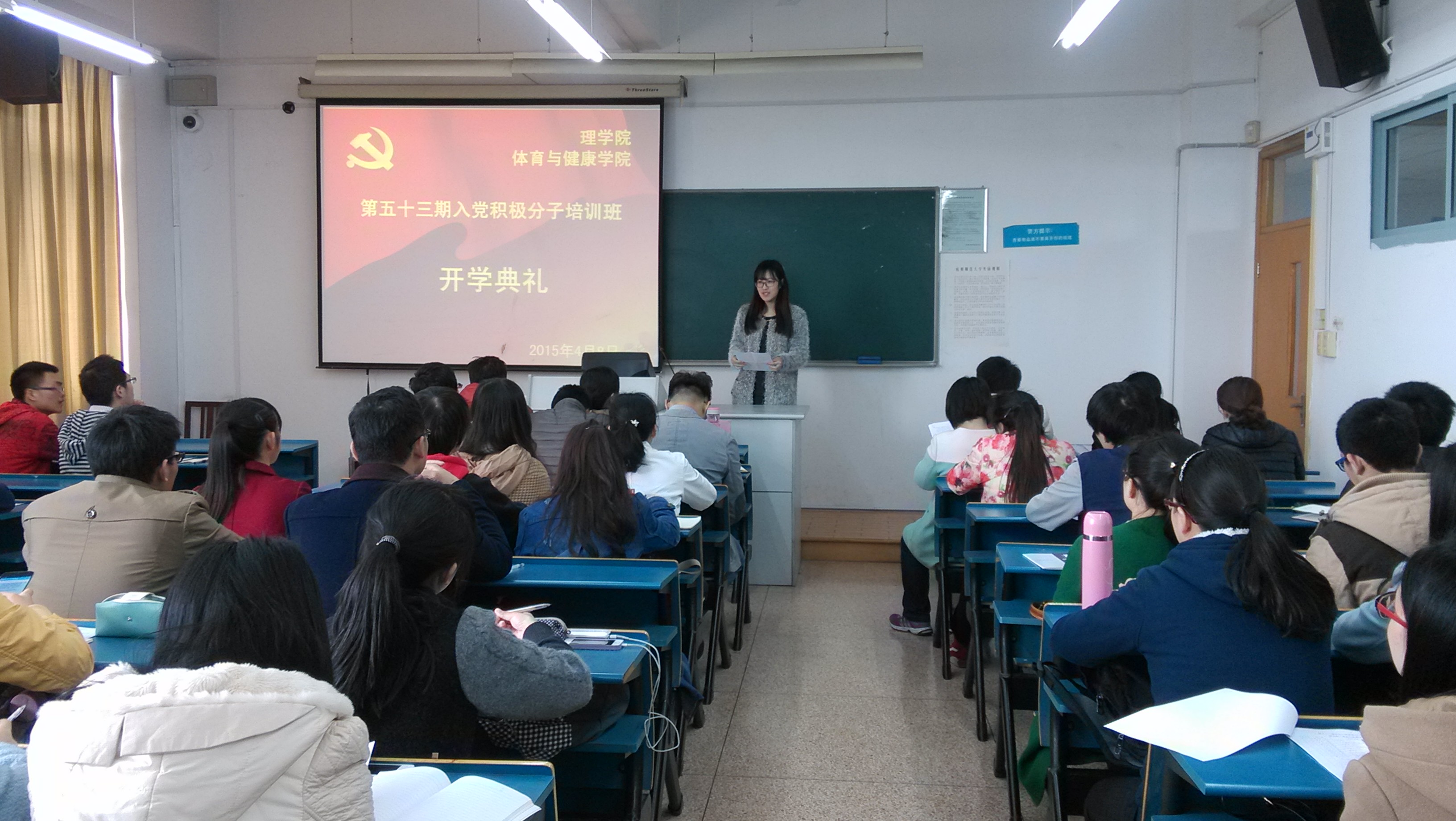 4月8日下午,由理学院与体育与健康学院共同举办的第五十三期入党积极分子培训班于A楼512举办开班典礼。体育与健康学院党委副书记方莉出席了开班典礼,理学院辅导员龙芳主持开学典礼。