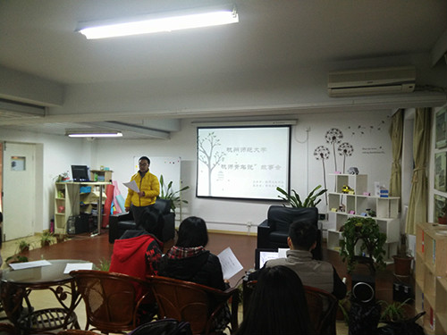2015年12月13日下午,由杭师大研究生会主办,理学院争鸣思辩协会承办的第一届 “杭师青年说”故事会在理学家园成功举办。经过激烈的角逐,梁欢玲获得了本次比赛的一等奖,吕爽爽、祁爽获得了二等奖,王旖旎、张桦翠、赵青霞获得了三等奖。