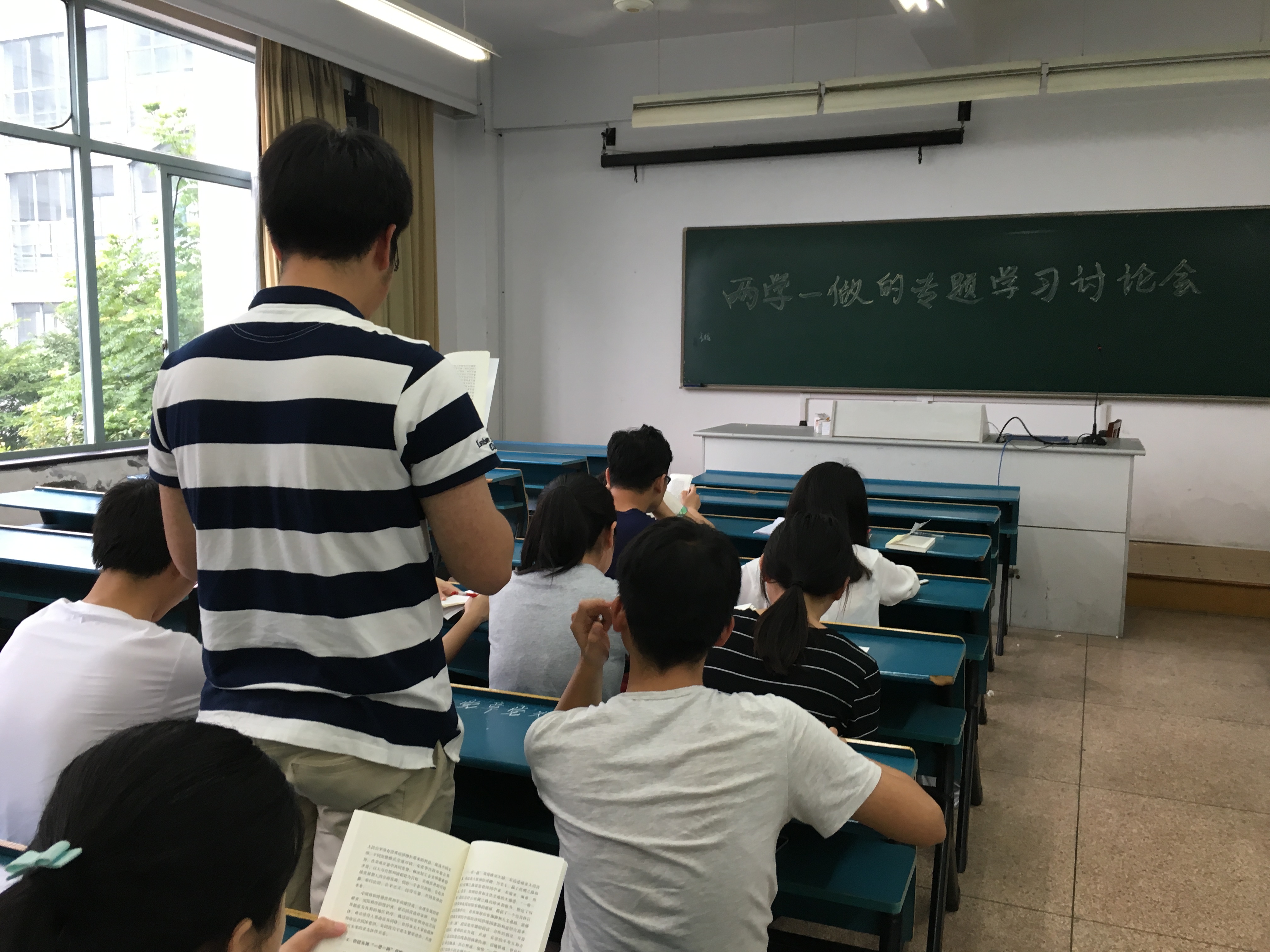 2016年5月31日下午4点50分,理学院第一学生党支部“两学一做”专题学习讨论在B213教室顺利开展。本次讨论由林锦主持,支部全体成员均携带党章和习近平总书记系列重要讲话读本准时参加。