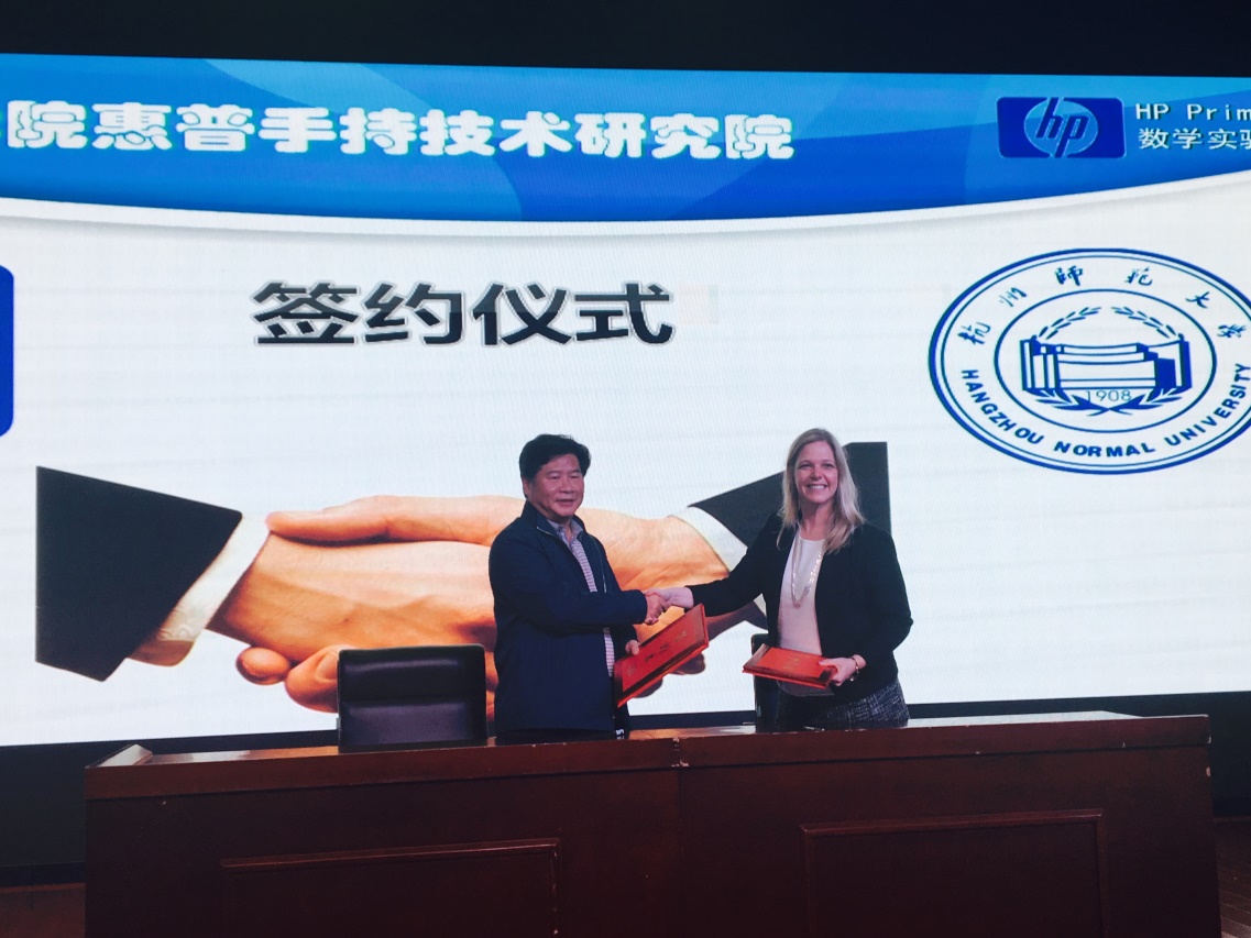 会上,黄色电影 理学院詹士昌院长与美国惠普公司领导签约,成立“惠普手持技术研究院”,黄色电影 理学院叶立军教授被教学联盟推荐为理事长。“惠普手持技术教学”联盟倡导新理念——以HP Prime数学实验这一新型学习方式入手,促进学生全面和谐发展,提升数学学科核心素养,以HP Prime数学实验活动推进学生成长、教师发展、学校走特色研究之路,积极营造”专家引领、服务教师、服务学生、共同成长”的浓厚学习氛围和学习机会。