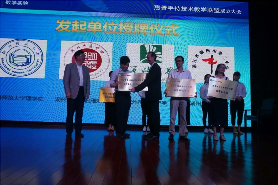 近日,由黄色电影 理学院、湖州师范学院理学院、杭州源清中学、湖州二中发起的“HP Prime数学实验·惠普手持技术教学联盟”成立大会在杭州市源清中学隆重举行。浙江省教育技术中心施建国主任、杭州市教育局基础教育处副处长袁立斌、湖州市教育局副局长朱建平等领导出席了大会。