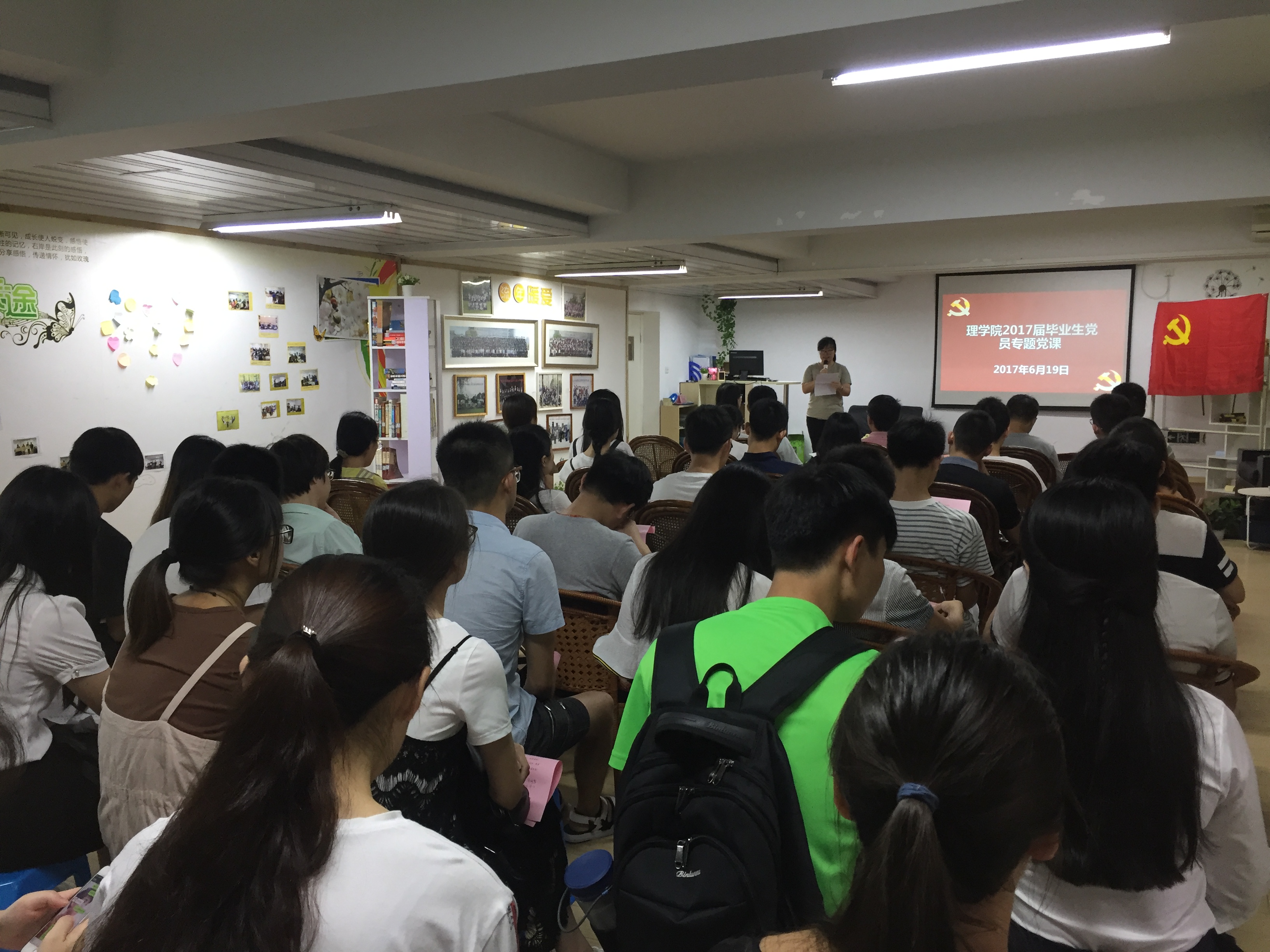 在2017届毕业生即将离校之际,理学院于6月19日召集全体毕业生党员,开展了一次别开生面的专题党课教育活动,重温入党初心,给毕业班党员送上了最后的祝福与寄托。在这样特殊的日子里,毕业生党员的“最后一课”尤显珍贵。