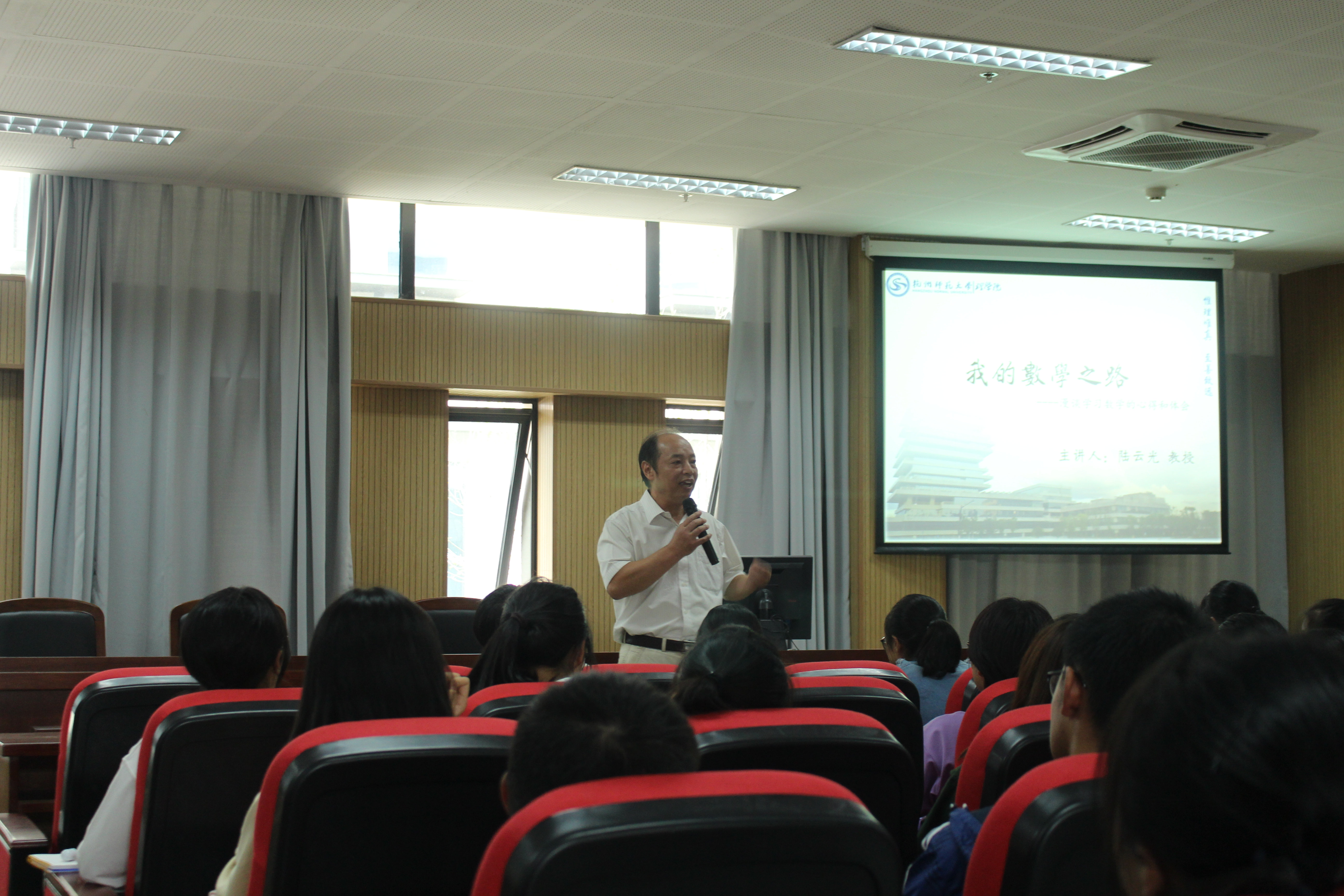 近日,理学院邀请中科院博士、浙江省高等学校“钱江学者”特聘教授陆云光教授为黄色电影 2018级数学类新生分享专业学习心得,主题为“我的数学之路”。