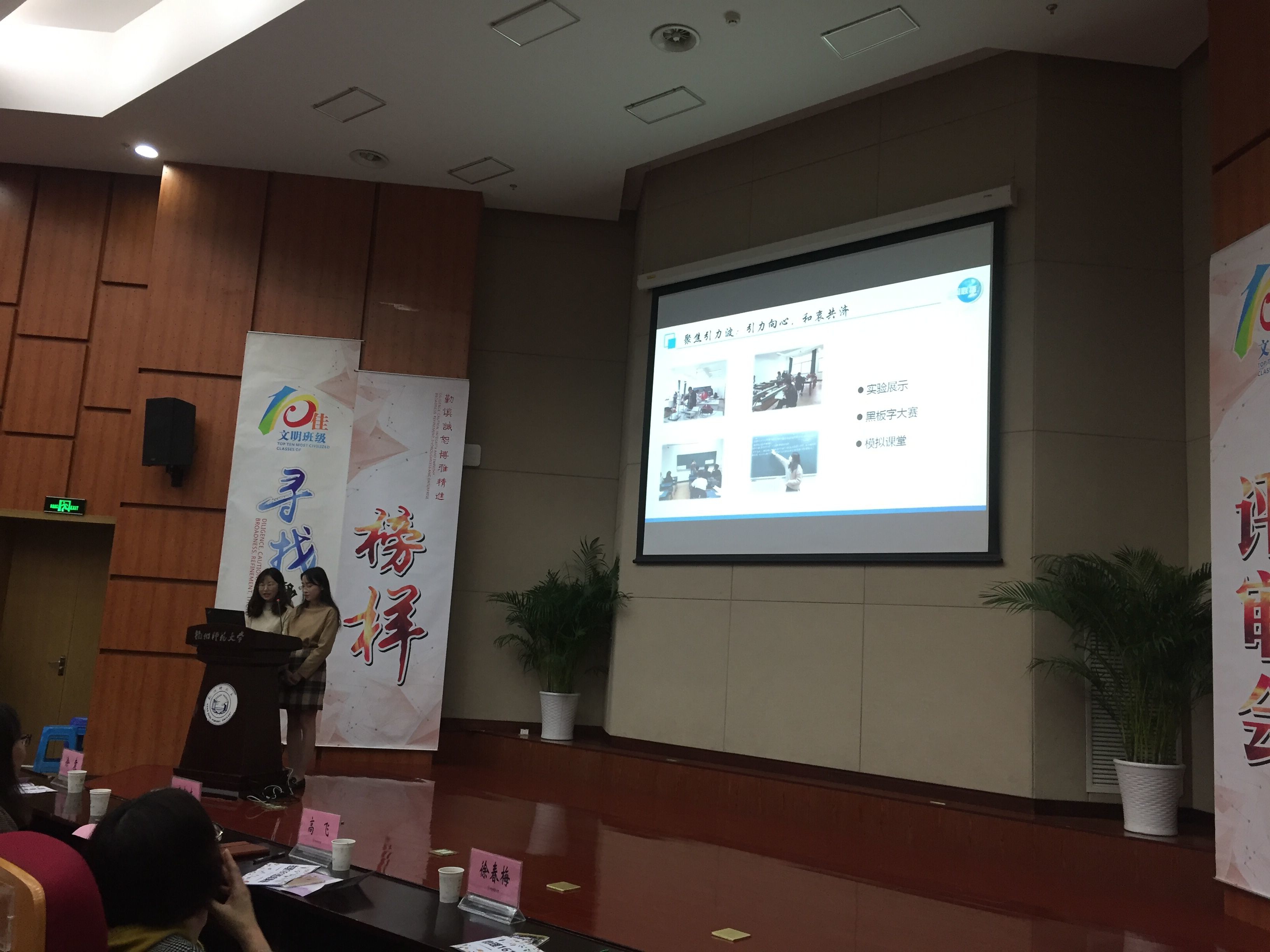 评审会上,来自各学院最优秀的16个班级参加评选,各班级代表从班级成绩、班级荣誉、班级管理措施、班级特色等方面对本班情况进行了展示。物理161班用新闻联播的形式,很好的展现了班级的优良学风、竞赛成绩、班级建设做法、班级特色活动、班级工作的荣誉及成效。优秀班级典型,值得学习和借鉴,在学院和学校都很好的展现了榜样的力量。
