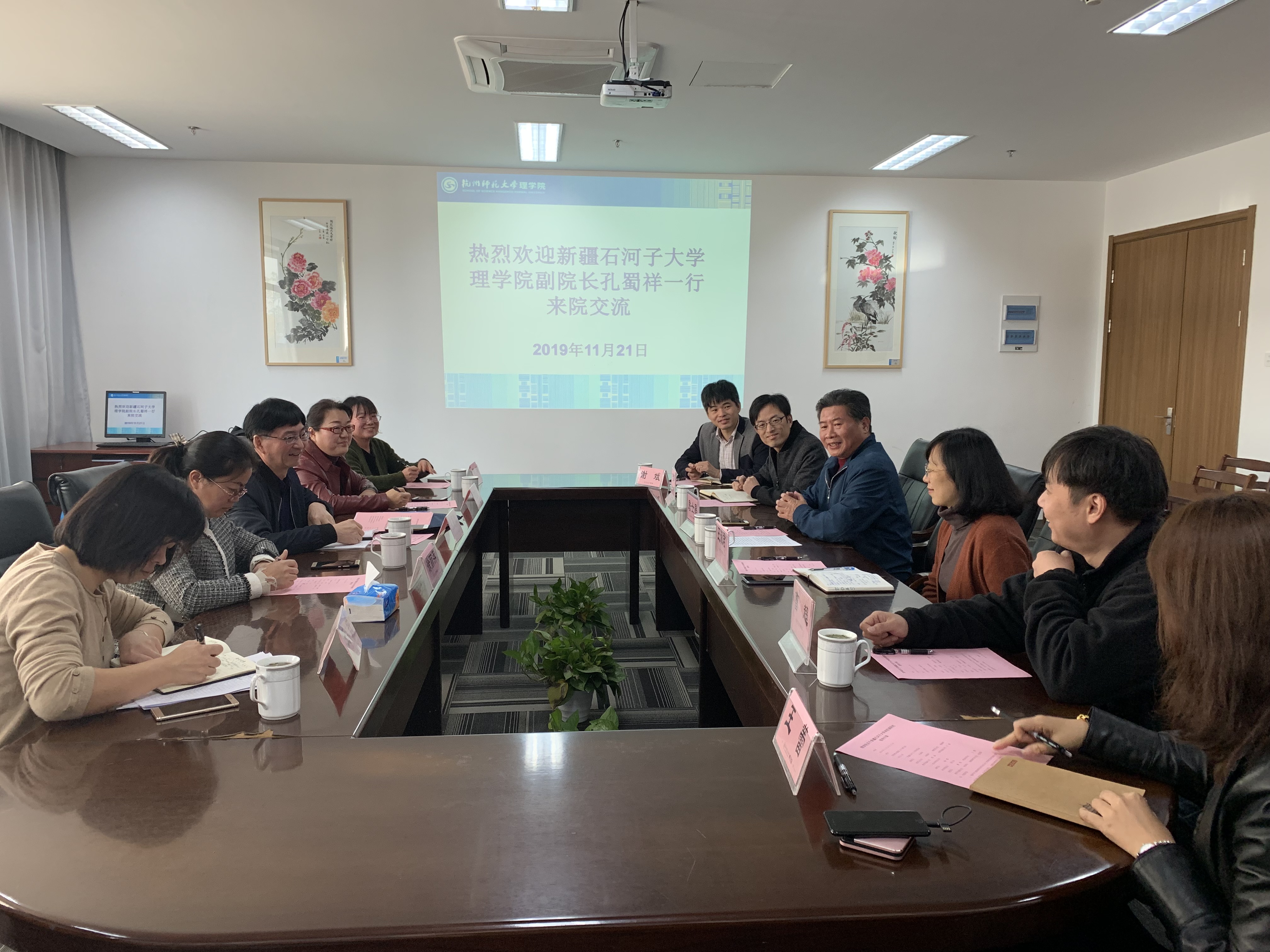11月21日,新疆石河子大学理学院副院长孔蜀祥一行来黄色电影 调研师范类专业认证工作。黄色电影 召开座谈会,院长詹士昌、书记王淑君和副院长曹超等相关老师参与座谈。