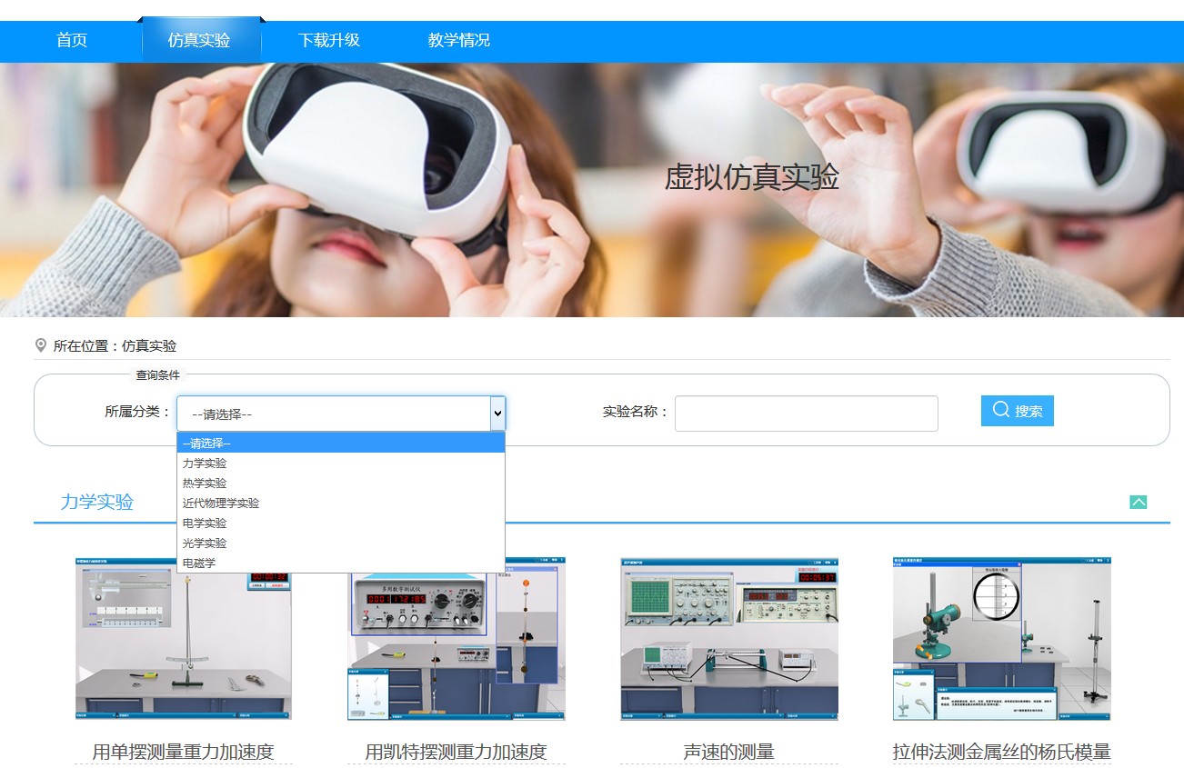 虚拟仿真实验教学平台目前配备有大学物理仿真实验系统、量子光学虚拟仿真实验系统以及一个虚拟仿真实验室。