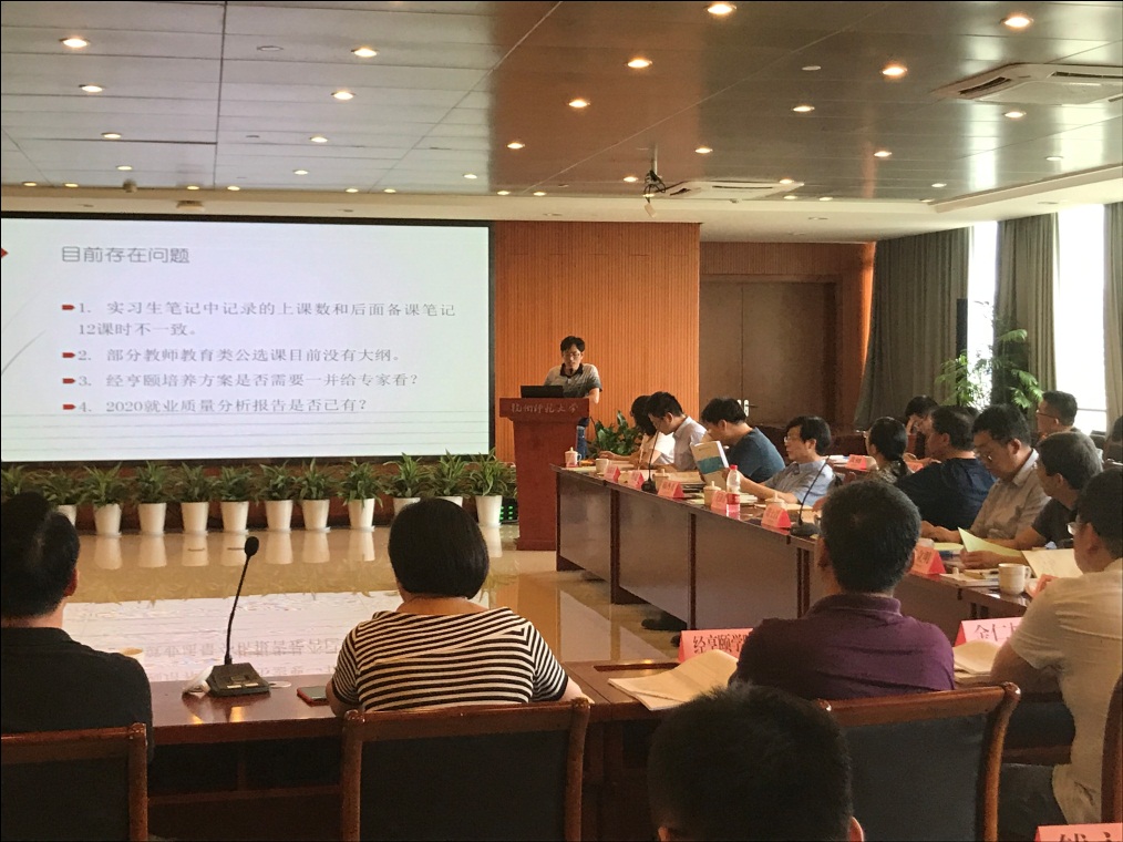 数学专业负责人何济位教授对数学师范认证自评报告(初稿)和存在的具体问题进行汇报,与会职能部门和二级学院领导针对具体问题,结合各自承担的职责进行了发言,并表示将全力支持数学师范专业认证工作。