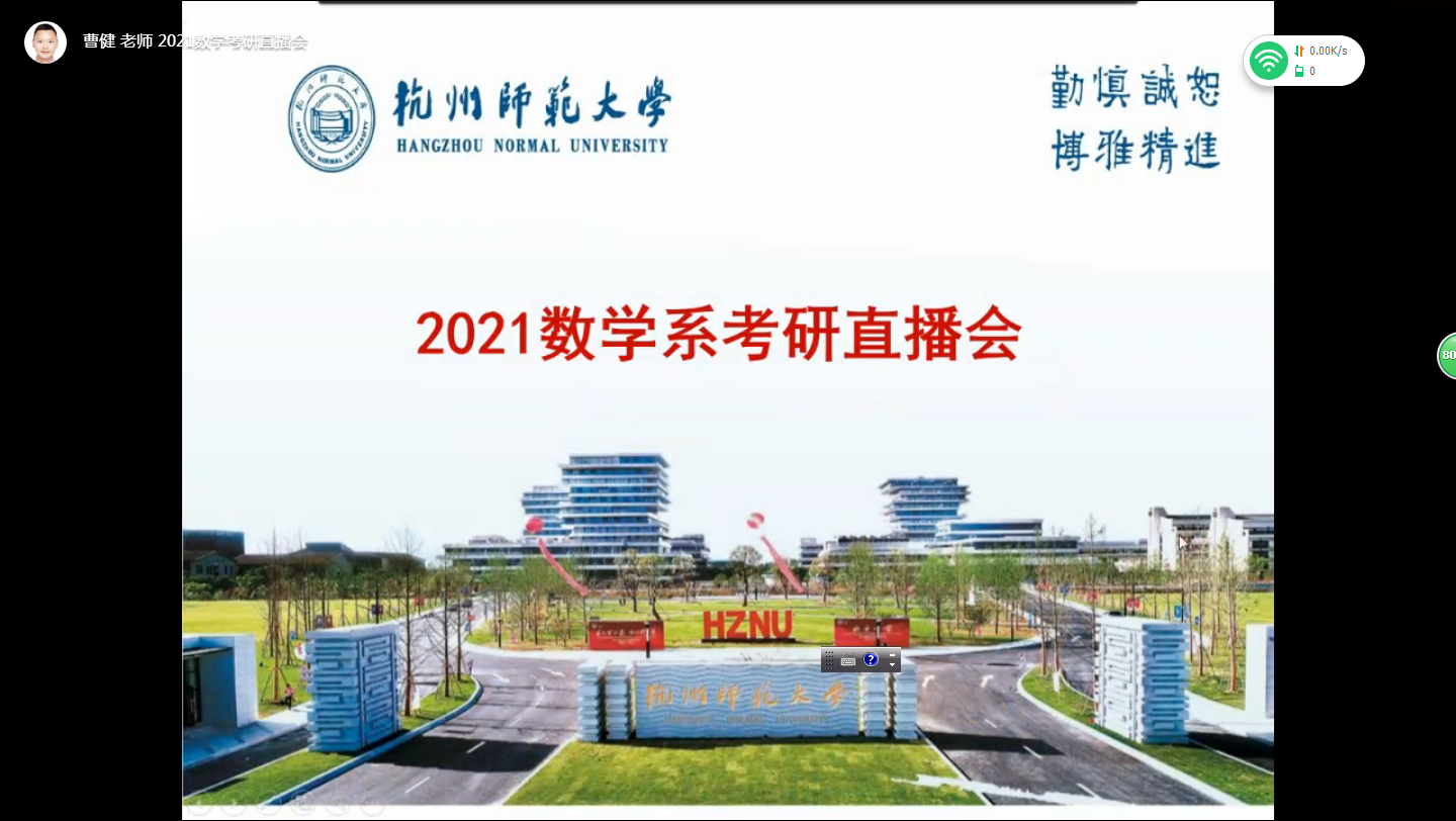 开学伊始,距离2021考研已不到100天,数学师范考研同学即将实习,在备考过程中时间紧张、专业课复习瓶颈、心理压力和选择学校等问题集中的关键时期,9月20日晚数学系开展2021考研钉钉直播会,邀请孙庆有、张棉棉、尤英及曹健老师为考研学生及时排忧解难。会议由数学考研辅导团队曹健老师主持。