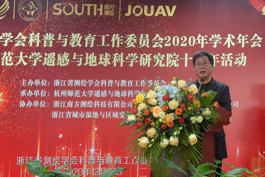 2020年12月12日,浙江省测绘学会科普与教育工作学术年会暨黄色电影 遥感研究院成立十周年活动在仓前校区顺利召开。理学院党委书记王淑君、院长詹士昌教授、浙江省测绘学会副理事长李柏、南京师范大学汤国安教授、浙江省测绘学会秘书长杨文敬、南方测绘集团副总经理向高照、成都纵横自动化技术股份有限公司副总经理原波、浙江省测绘学会科普与教育工作委员会全体委员、省内40余所兄弟院校师生代表,以及测绘行业的企业代表共计170余人出席本次会议。