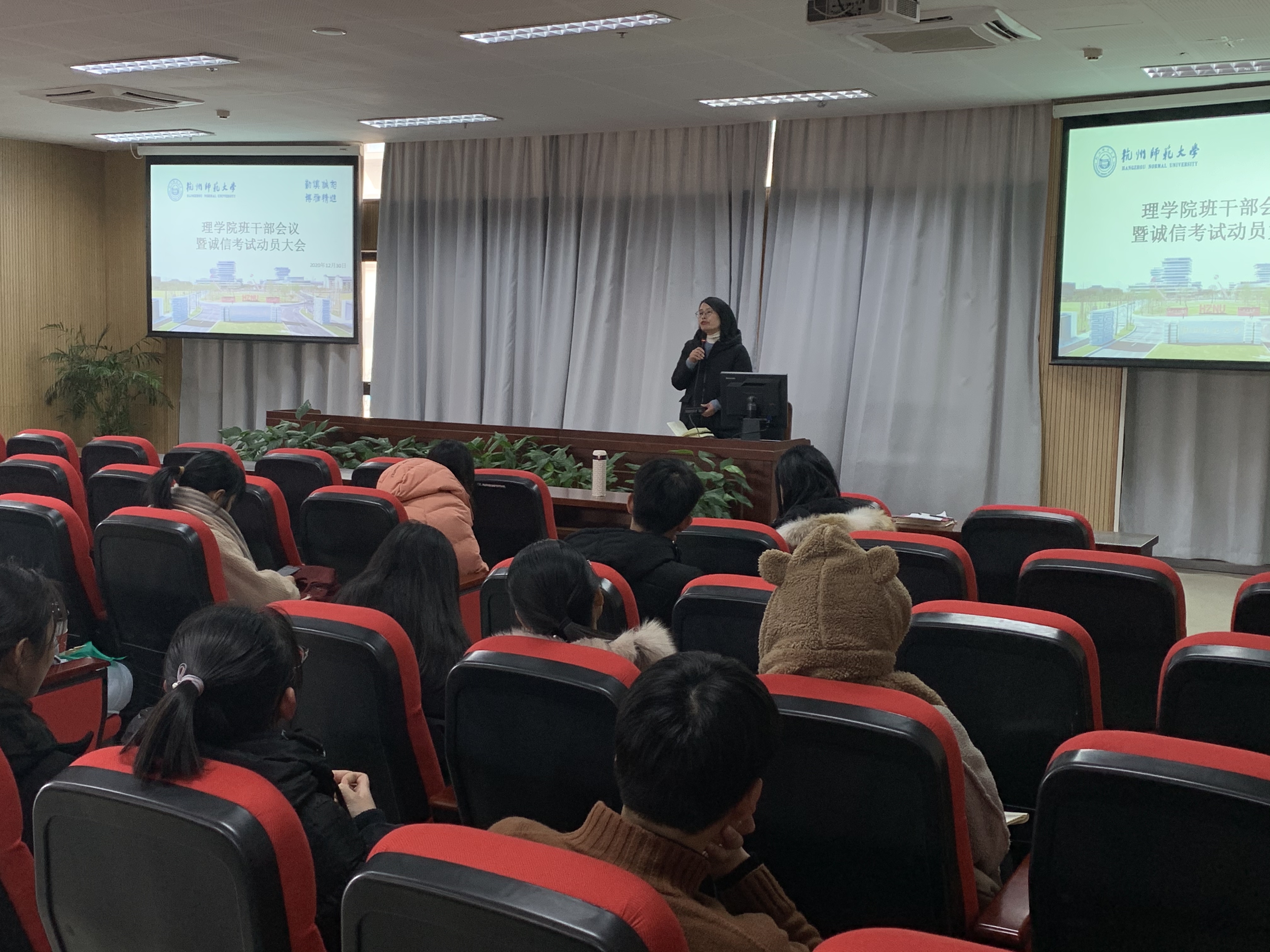 为增强同学们诚信考试意识,严肃考风考纪,营造自立自律、刻苦学习的期末备考氛围,12月30日,理学院召开全体班干部会议暨诚信考试动员大会,学院党委副书记应金飞、院长助理马国春、教务科科长王蕾、各年级辅导员以及各班级主要学生干部参加了此次大会。