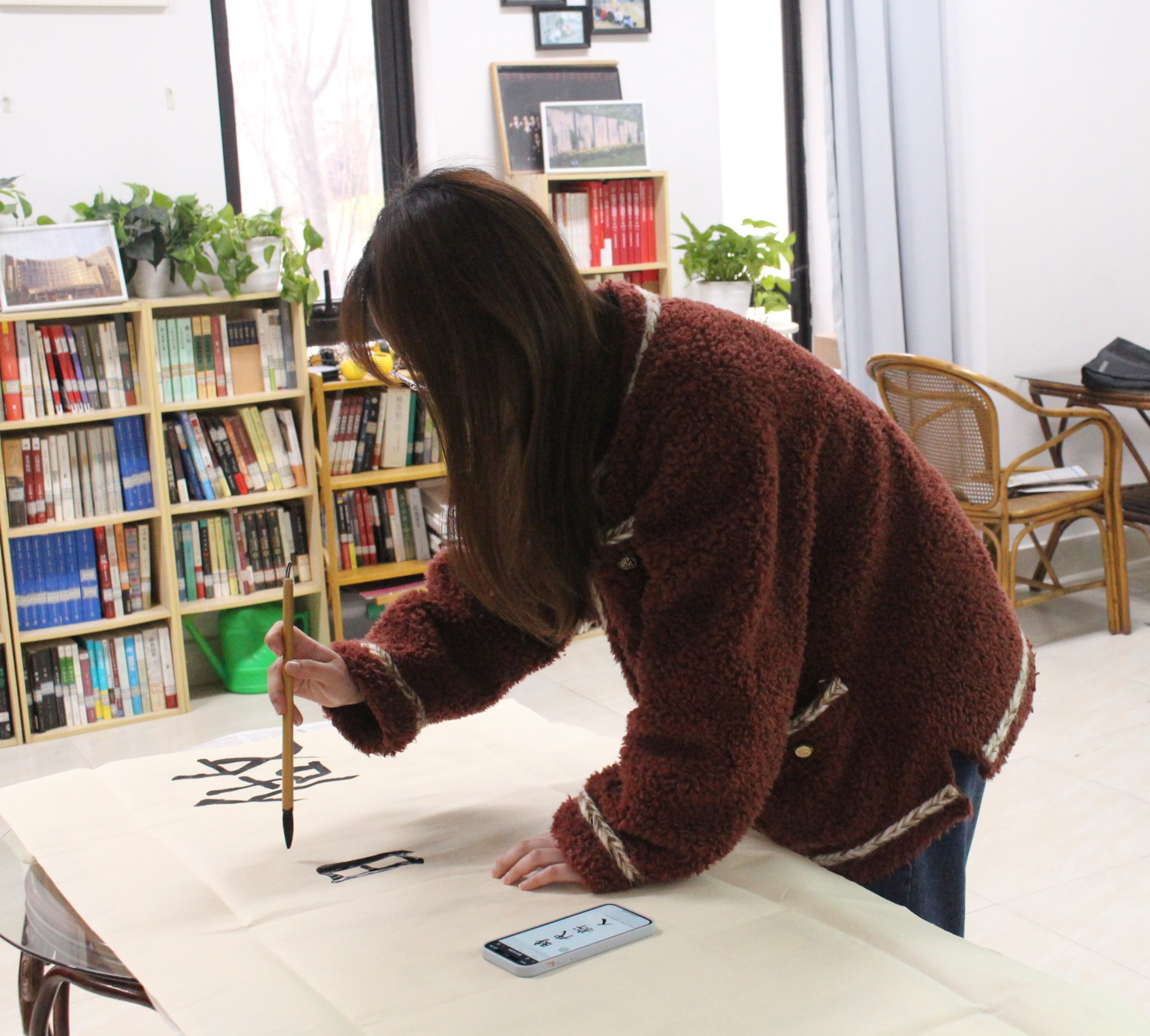 班会渐渐进入尾声,班级中5名同学以接力的方式现场书写“庆百年风貌,做时代新人”的毛笔书法作品,作品完成后,同学们有序上台在作品上庄重地写下自己的名字,以表达对党的祝福。最后,全体同学饱含深情地合唱了一曲《我爱你,中国》献礼建党100周年,整个教室都荡漾着同学们对祖国的爱。