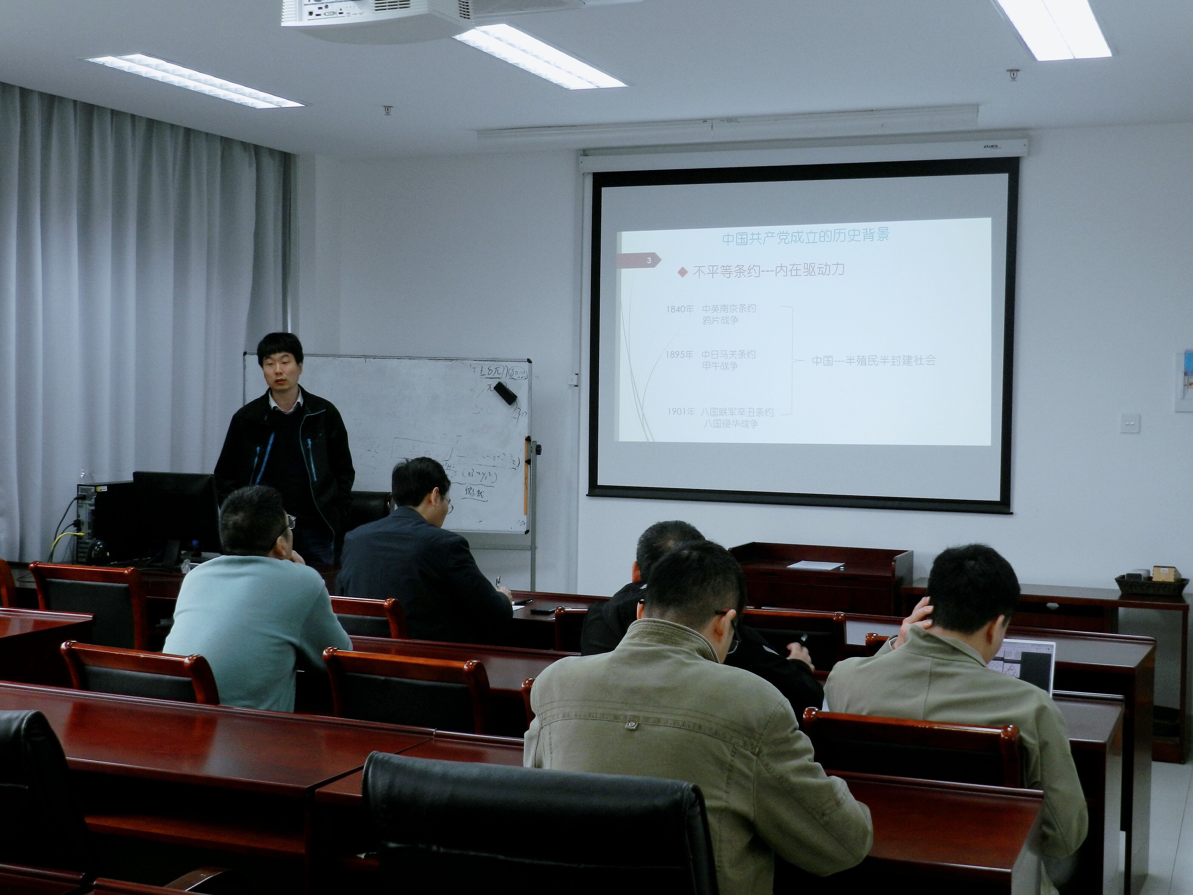 教工党员李玉科教授做了《中国共产党党史博览》专题报告。通过李老师讲述,教工党员们重温了中华民族的苦难历史,和中国共产党带领中国人民探索救国、强国、富国之路的艰辛历程。