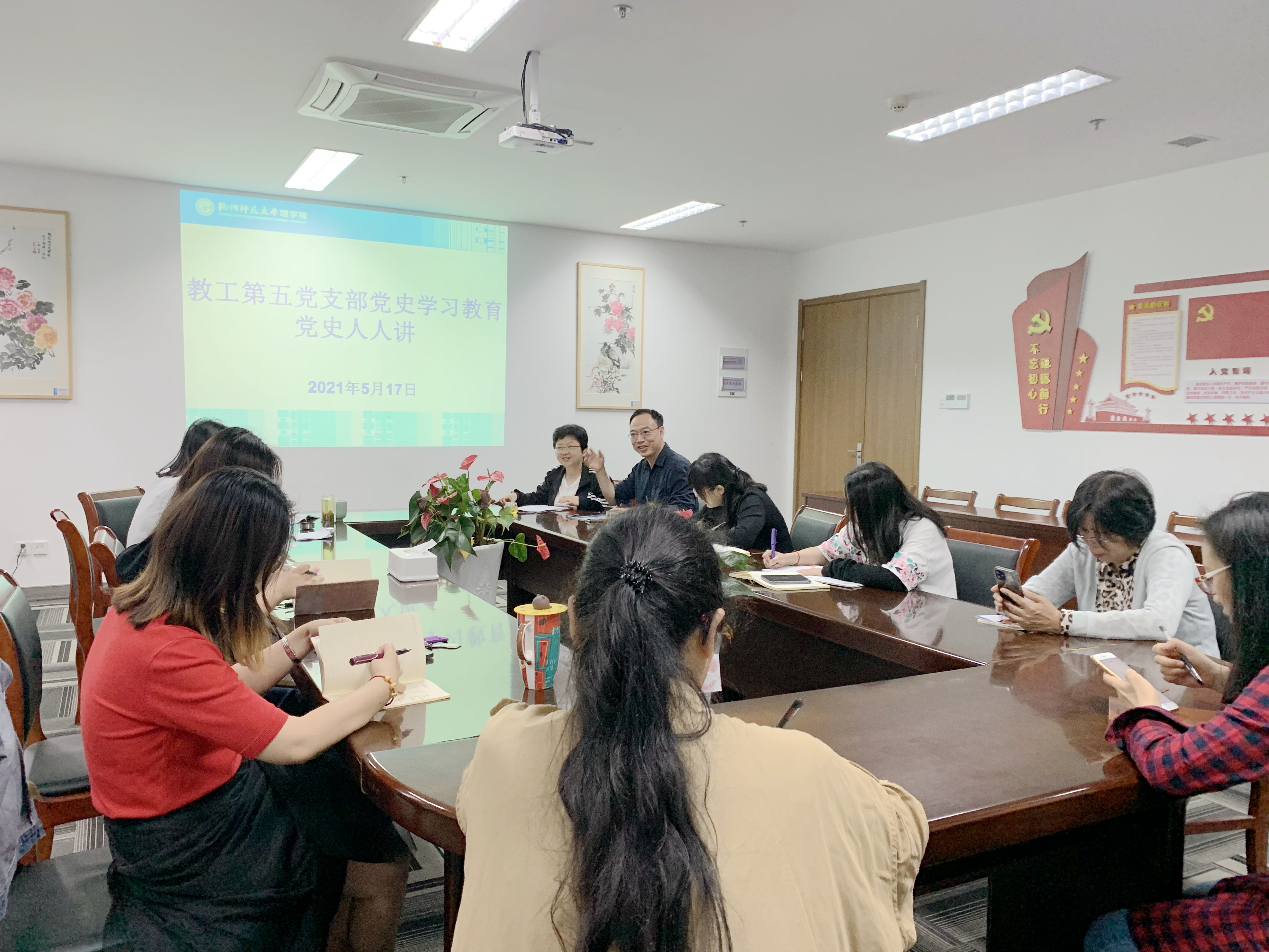 5月17日,教工第五党支部召开支部大会,开展党史人人讲活动。支部全体党员参加活动。