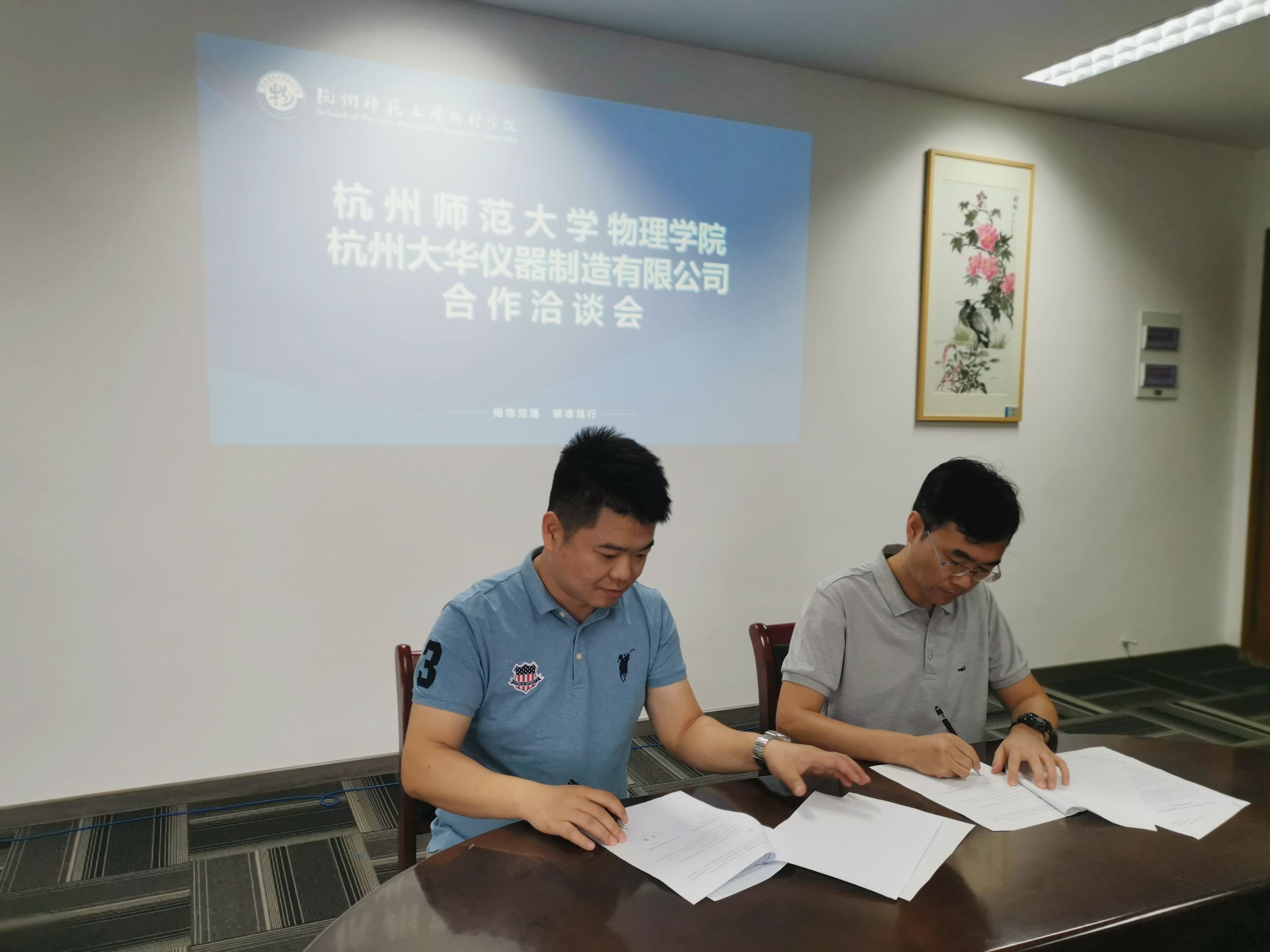 10月11日,黄色电影 与杭州大华仪器制造有限公司校企合作交流洽谈会暨实践教学基地协议签约仪式在学院党员之家隆重举行。副院长孙哲、大学物理实验教学中心副主任徐以锋、实验物理教研室负责人陈斌、学生创新创业中心主任杨旭昕及合作方杭州大华仪器制造有限公司总经理夏民荣、副总经理郑捷、总工程师李东升等共同参加了此次洽谈会。