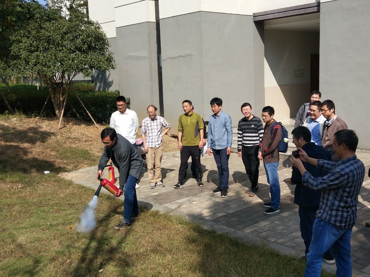 学院现有各种教学和科研实验室十多个,除了各种大功率电器设备的使用外,还经常面对一些易燃易爆品的处理,所以安全工作尤为重要。本次活动先由王杭栋老师讲解目前实验室内的两类灭火器——干粉灭火器和二氧化碳灭火器的使用方法和使用场景,然后让每位老师亲自操作这两类灭火器,进行模拟演练。副院长侯红生和孙哲副院长均要求全体教师和学生,要进一步强化消防安全意识,加强消防安全知识学习,在突发火警时能沉着、冷静地面对,正确处置,为学院消防安全工作做出积极努力。