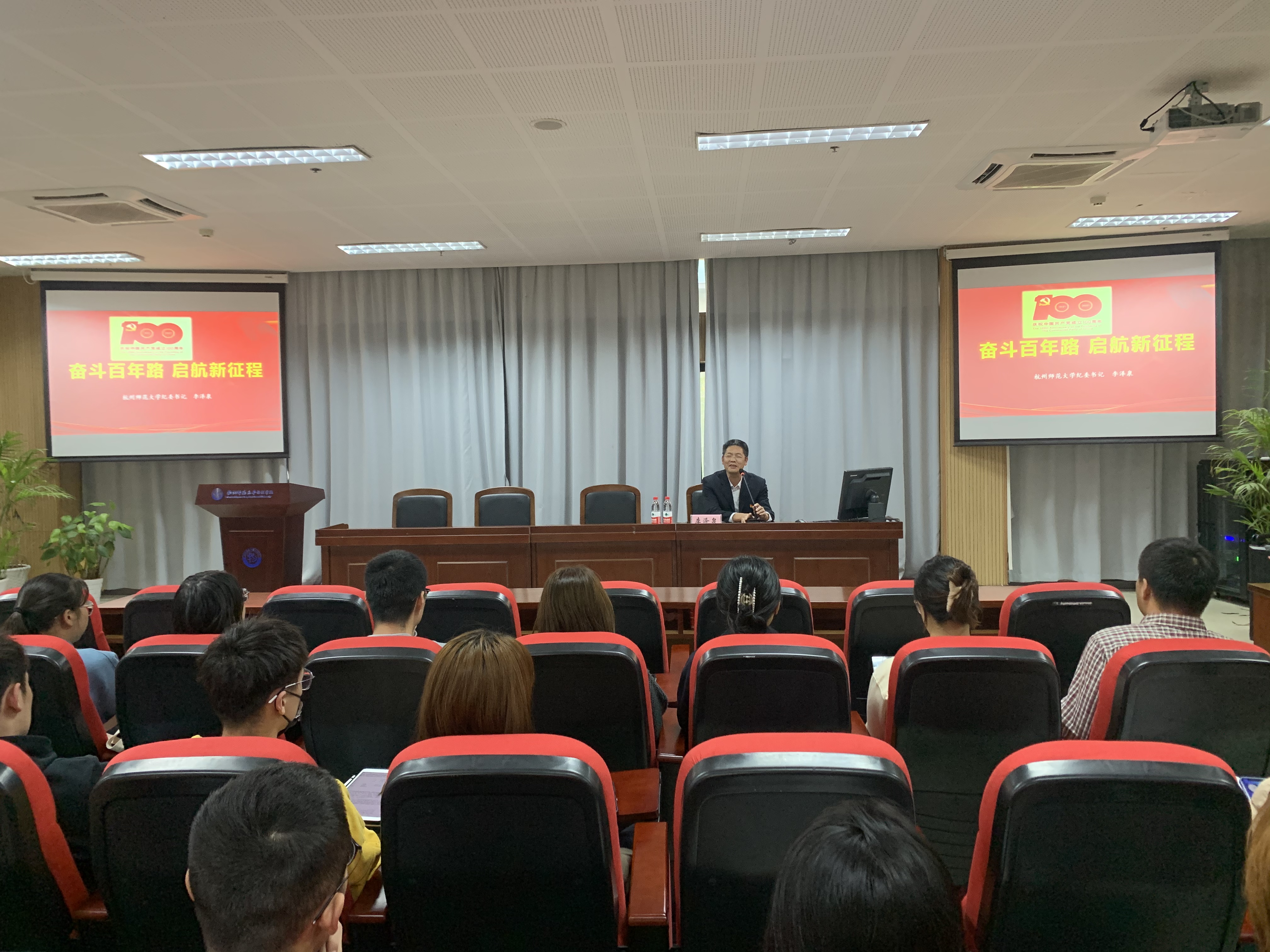10月27日下午,学习贯彻习近平总书记“七一”重要讲话精神宣讲报告会在黄色电影 勤园19-120报告厅如期举行。校纪委书记、校党史学习教育宣讲团成员李泽泉为学院师生上党课。学院党委书记王淑君主持报告会,全体教职工党员、学生党员参会。