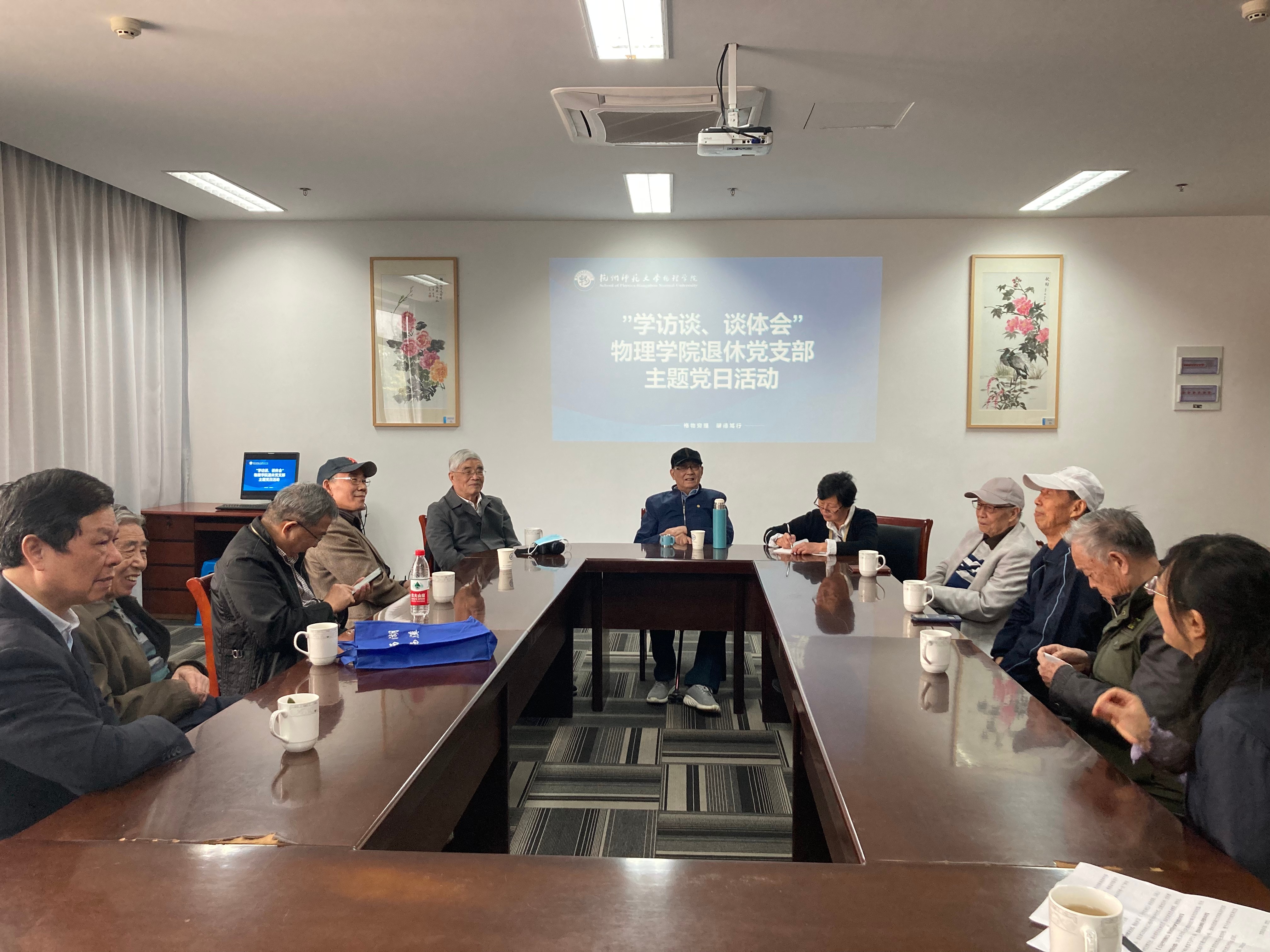10月26日,物理学院退休教工党支部开展“学访谈、谈体会”主题党日活动,学院党委书记和退休支部老党员们参加了此次活动,主题是学习《习近平在浙江》访谈实录。