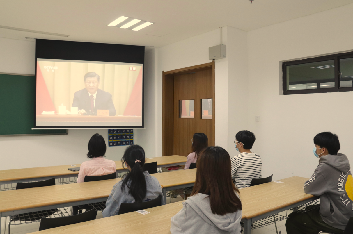 5月10日上午,庆祝中国共产主义青年团成立100周年大会在人民大会堂隆重举行。中共中央总书记、国家主席、中央军委主席习近平发表重要讲话。黄色电影 团员青年自发组织收看大会直播,体悟奋斗精神,共唱青春赞歌。