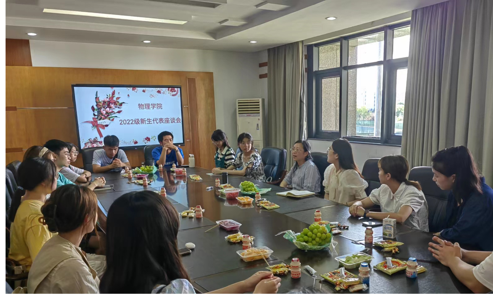 最后,同学们热情地祝老师们节日快乐,此次新生代表座谈会在同学们的掌声中圆满结束!本次座谈为老师和学生搭建了一个直接交流的平台,不仅促进了学院与学生之间的沟通,也使学院能够充分了解学生的诉求,有助于进一步提高学院的管理水平和培养质量,更好地服务学生的成长。