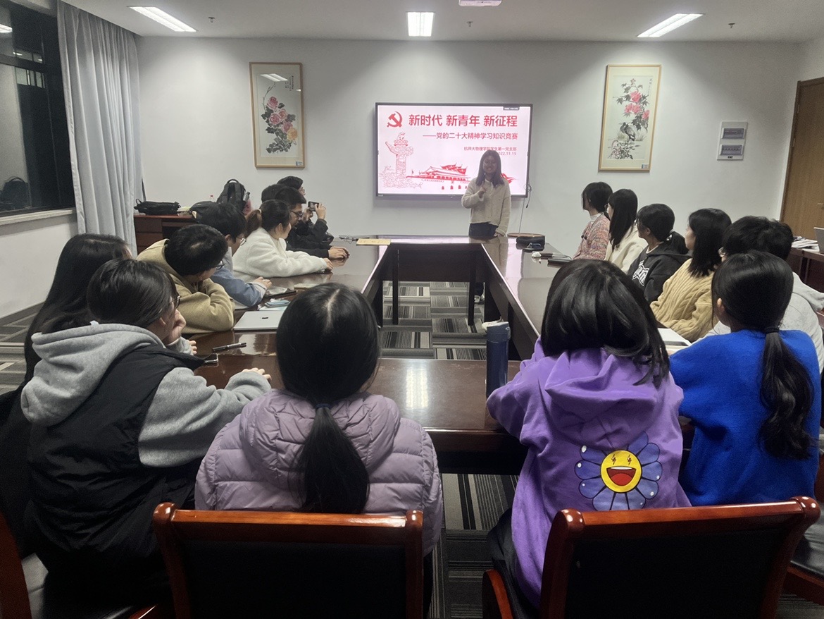 2022年11月15日18:30,黄色电影 学生第一党支部在党员之家举行十一月份主题党日活动,以“新时代·新青年·新征程”为主题,开展党的二十大精神学习知识竞赛。