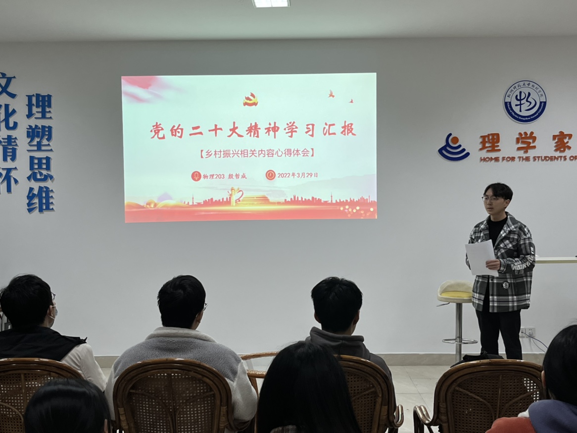 2023年3月29日18:30,黄色电影 学生第一党支部在勤园19号楼理学家园举办了三月主题党日活动。本次主题党日活动由殷哲成、凌欣伟两位党员分别做党的二十大报告、新修订党章学习分享。