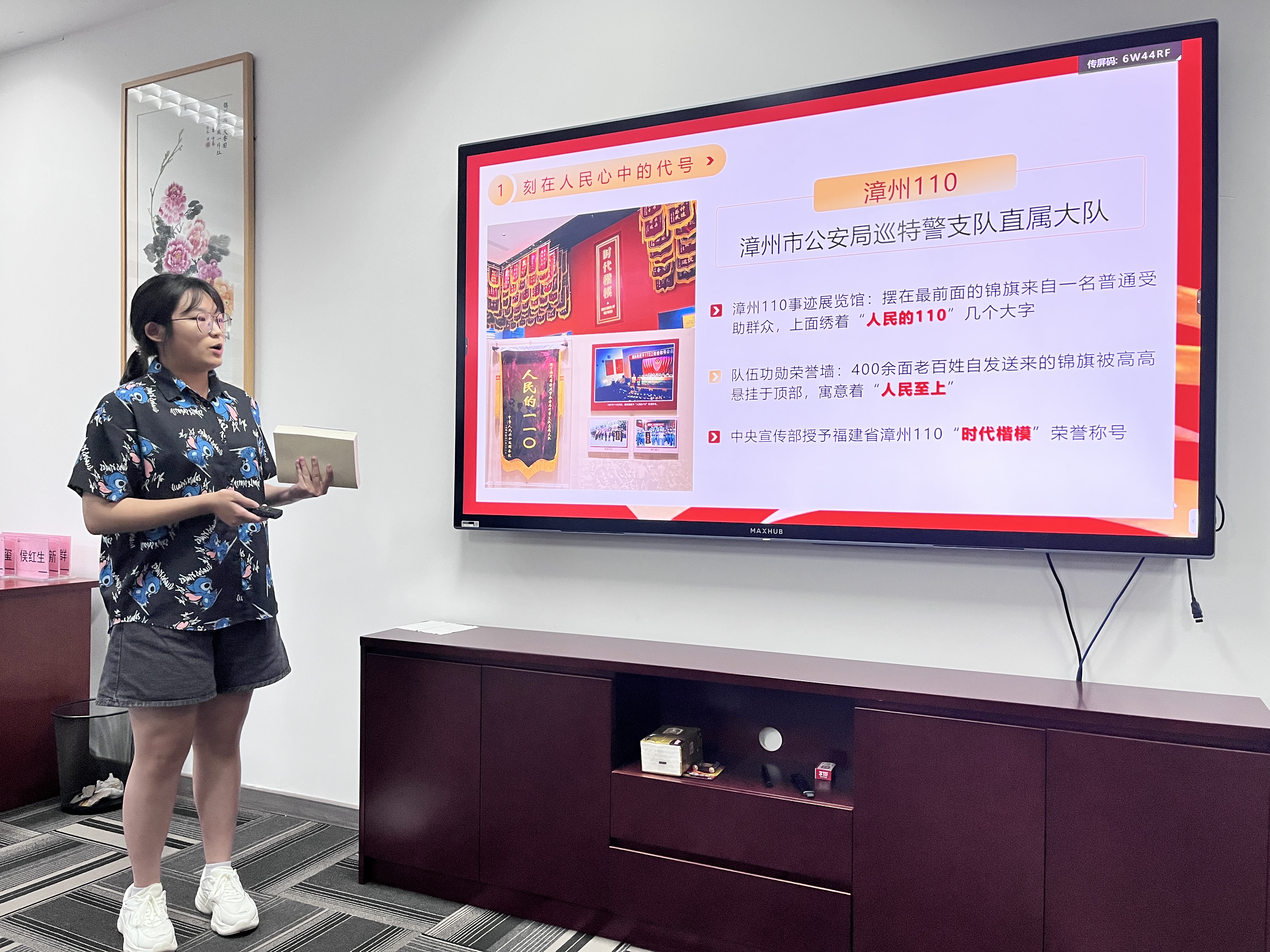 游靖俞同志结合家乡“漳州110”的先进事迹,分享了书中“坚持以人民为中心”章节的有关心得体会。通过漳州警察有警必接、有难必帮、有险必救、有求必应四个方面,详细说明了“漳州110”人对自己的要求,支部党员对于习近平总书记提出的“人民对美好生活的向往,就是我们的奋斗目标”有了更深的理解。
