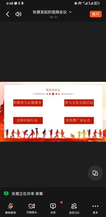 6月29日18:30,学院学生第二党支部在线上开展六月党日活动,支部学生党员参加会议。本次党日活动,主要由夏怡琪和张慧两位同学,分享了她们学习“牢记嘱托、亚运有我”的心得体会。