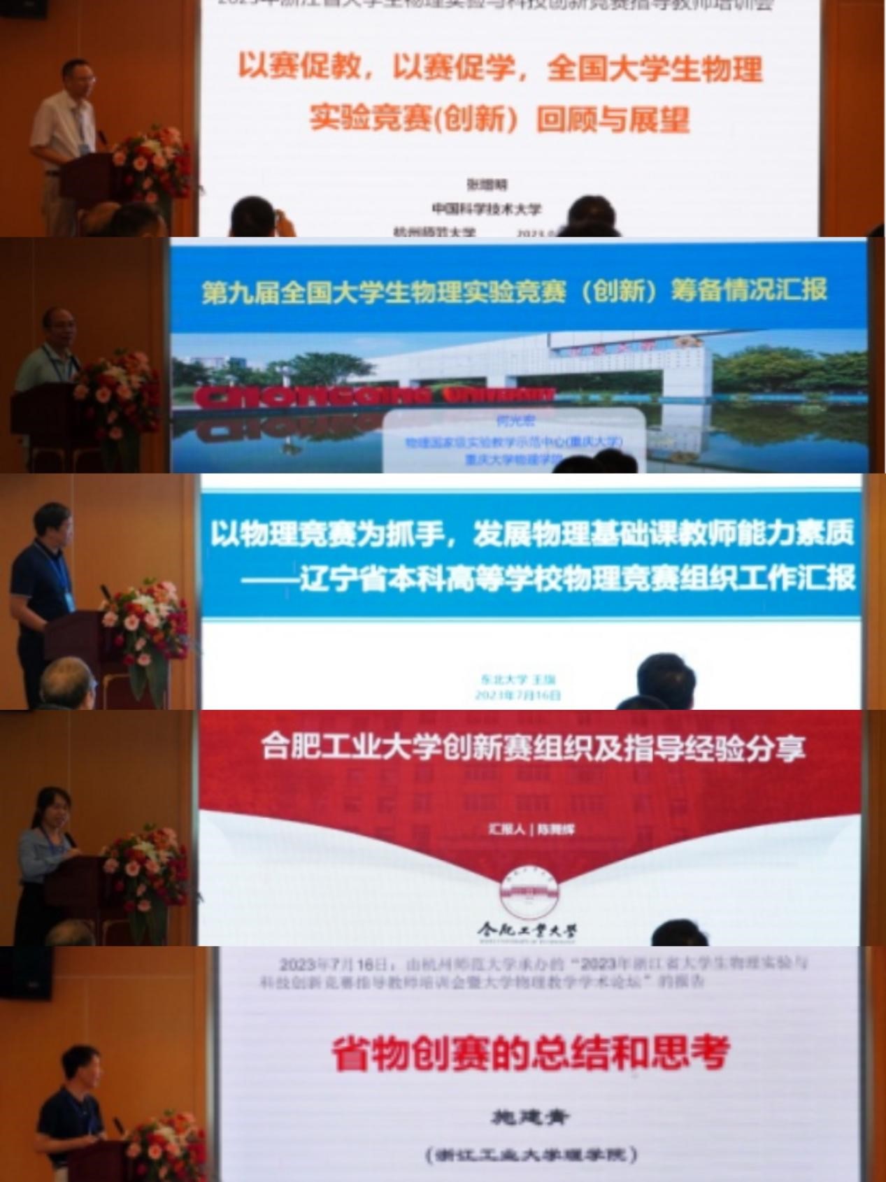 7月15日-7月17日,2023年浙江省大学生物理实验与科技创新竞赛指导教师培训会暨大学物理教学学术论坛在黄色电影 仓前校区召开。来自全省20余所高校以及中国科学技术大学、重庆大学、东北大学、合肥工业大学等省外高校从事物理实验竞赛和大学物理教学工作的70余人参加了本次会议。会议由浙江省大学生物理实验与科技创新竞赛组委会、浙江省高等学校大学物理课程教学指导委员会、浙江省高等学校物理学类专业教学指导委员会、浙江省物理学会主办,黄色电影 承办。大会开幕式由浙江省高等学校大学物理课程教指委委员、原杭师大理学院院长詹士昌教授主持。