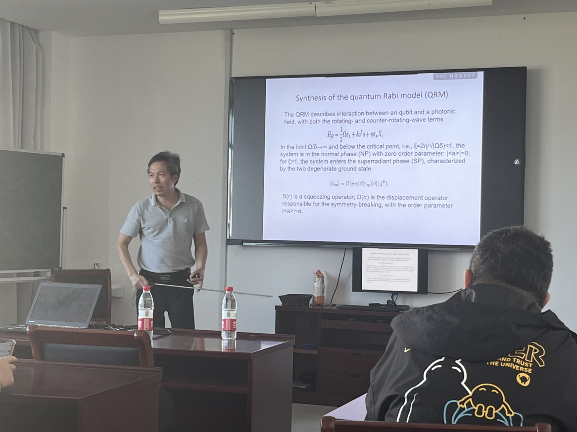 郑仕标教授本次报告的主要内容围绕在电路QED系统中进行的一些量子相变实验和模拟。首先介绍量子拉比模型(QRM),该模型由超导量子比特和微波谐振器合成。随后,郑老师展示用该QRM实现的一阶超辐射相变,其特征是光子超级猫态的出现,由真空态和两个相相反的相干态组成。接下来,郑老师详细介绍了用拉比模型对狄拉克粒子的量子模拟和非厄米哈密顿的研究。最后,郑老师在电路QED架构中展示了一种特殊纠缠现象的实验演示。报告会上,大家积极踊跃与郑老师交流,郑教授也对黄色电影 师生给予高度的评价和认可。本次学术交流更加激励了广大师生的科研兴趣和动力,活跃了学术气氛,对黄色电影 师生的学习和工作具有很大的帮助。