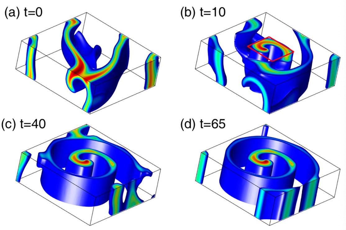 当心脏可激发系统中出现电湍流时,可能会引发危及生命的心室颤动。光遗传学是一种新兴技术,它具有产生心肌细胞动作电位的能力,从而可以影响心脏组织中的电波传播,因此有潜力控制电湍流。我们通过在组织上投射旋转的螺旋图案来实现对电湍流的控制。
