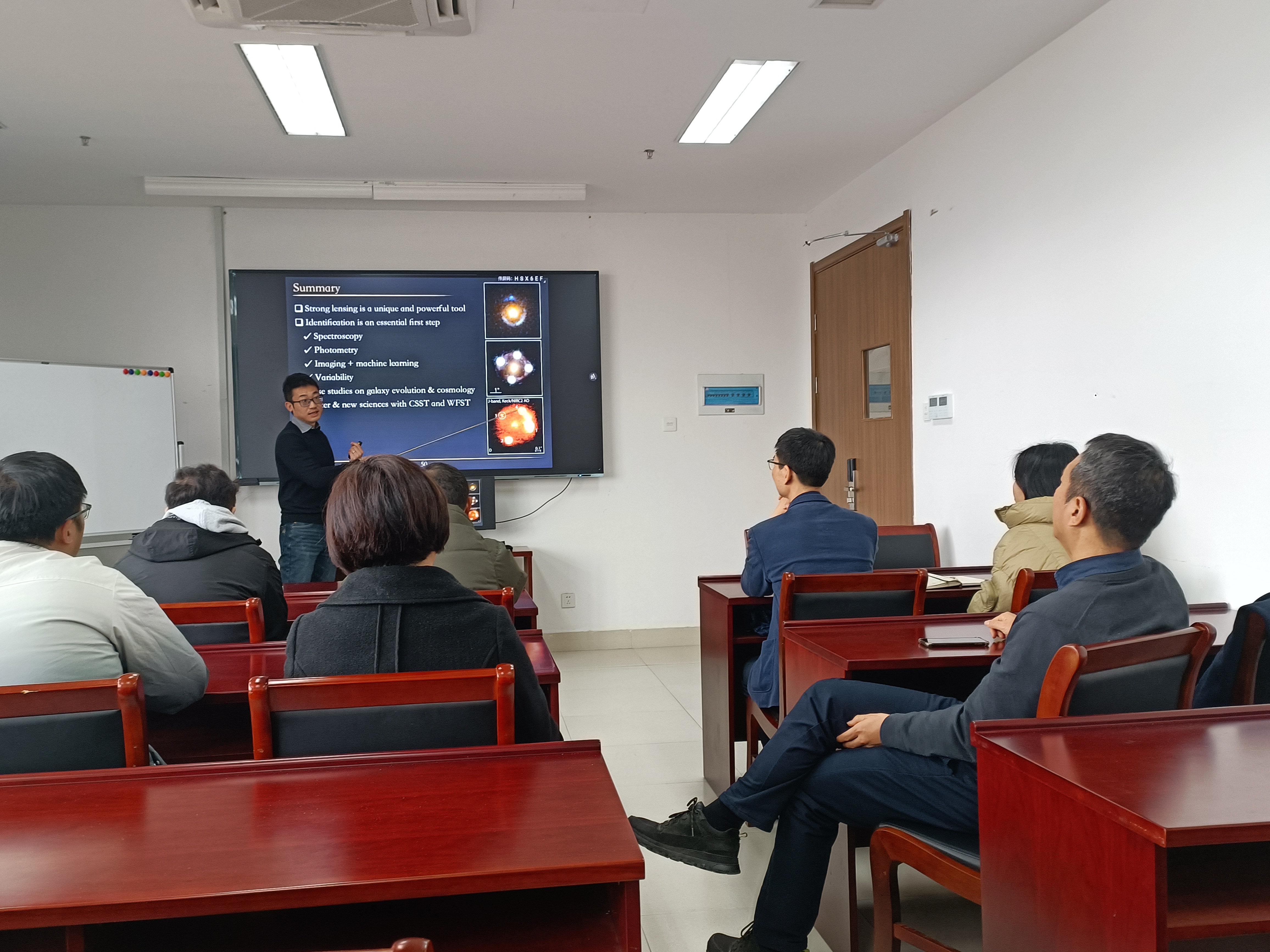 强引力透镜是一种由于前景物体的引力作用而形成的背景物体的多重像的现象。这种罕见而神奇的现象被利用作为探测重子物质、暗物质和宇宙学的独特而强大的工具。舒研究员在报告中简要概述了各个领域的强引力透镜的搜索方法,并展示了几个案例,说明了如何利用强引力透镜事件来研究星系的演化和宇宙学。他在报告的结尾还讨论了即将到来的中国空间站望远镜和广域巡天望远镜的前景。