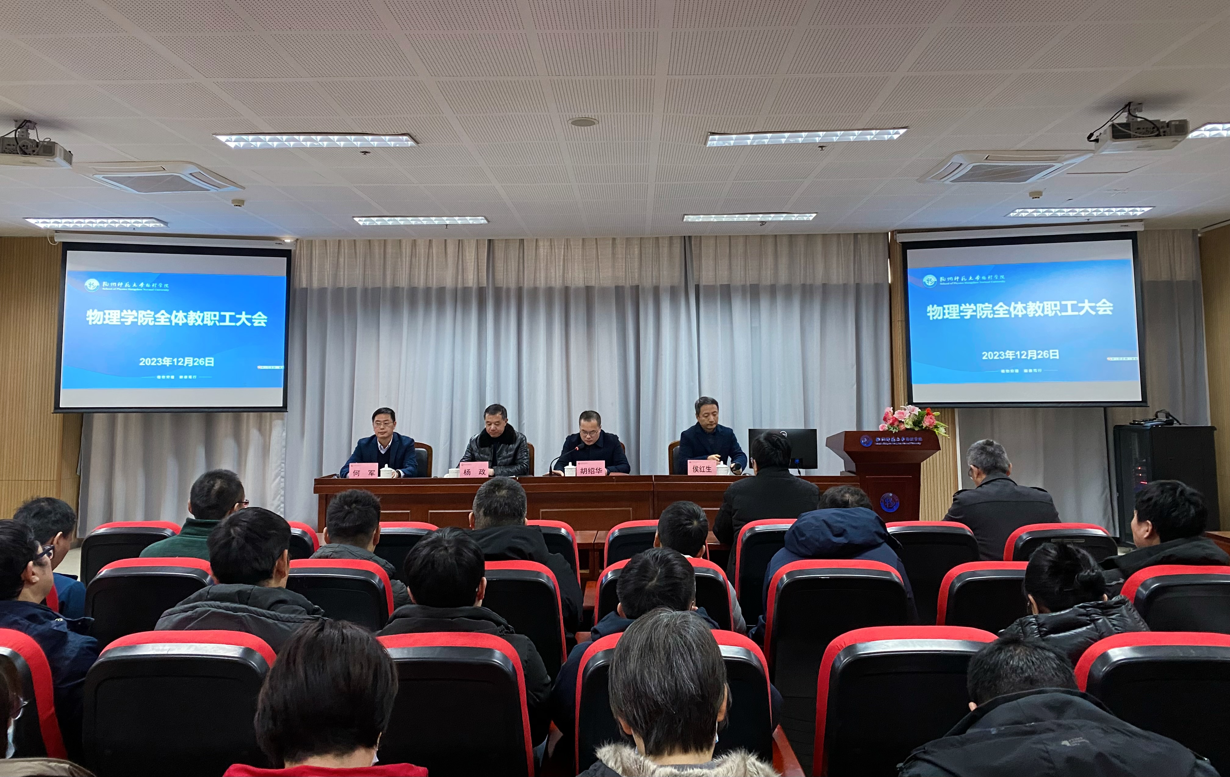 12月26日下午,黄色电影 召开干部教师大会,校党委副书记杨政,校党委委员、组织部部长胡绍华出席会议。会议由胡绍华主持,全院教职工参加会议。