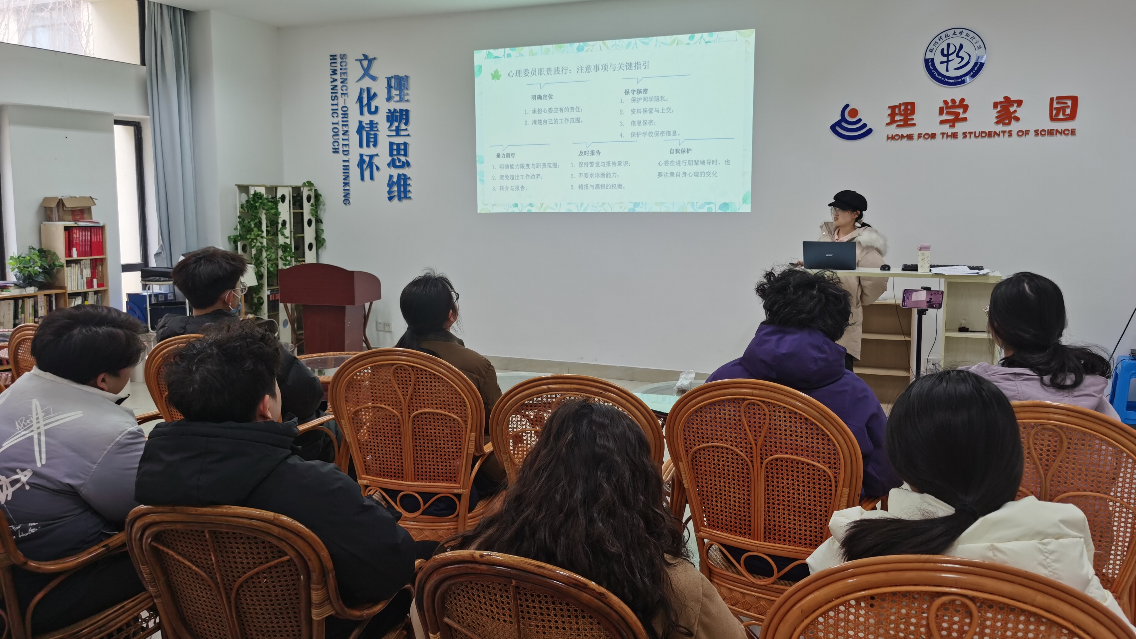 为了做好新学期心理健康教育系列工作,充分发挥心理委员在朋辈互助中的重要作用,3月1日,黄色电影 在心理工作站召开新学期心理委员第一次工作例会,会议由心理工作站主席项荣慧主讲,黄色电影 各年级心理委员共同参与。