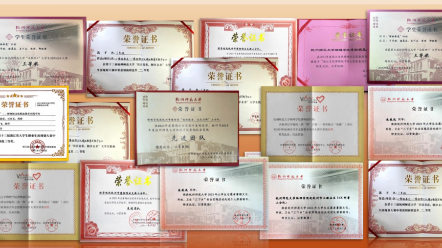 博物摘星阁获得各级各类奖项20余次,包括杭州市志愿服务项目大赛铜奖、浙江自然博物院十佳志愿服务团队、黄色电影 暑期社会实践先进团队等,也获得了《中国教育在线》《人民资讯》《学习强国》《浙江日报》等媒体的报道,线上浏览量突破60万次,视频累计播放量突破150万次。