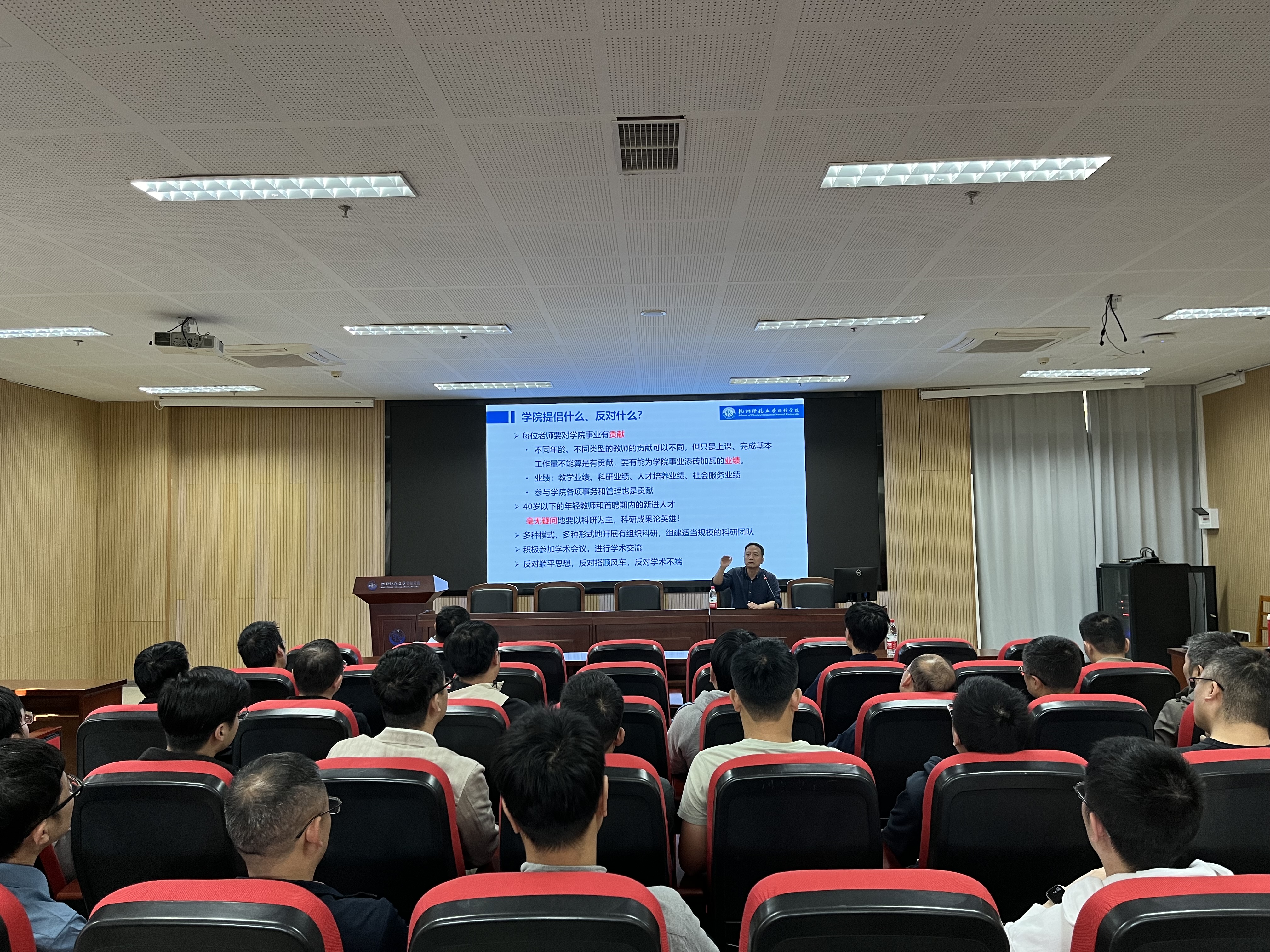 院长侯红生传达了校党委郭东风书记调研学院讲话精神,学院前期工作得到了学校的肯定,也对学院提出更高的要求和期望,希望学院能够向内求、向外看、向前走,向改革要生产力、向管理要战斗力、向党建要保障力量,聚焦人才建设、聚焦三重建设、践行“三个拒绝”。侯院长希望每位老师都要对学院事业有贡献,有能为学院事业添砖加瓦的业绩,多种形式地开展有组织科研,组建适当规模的科研团队,积极参加学术会议,进行学术交流。