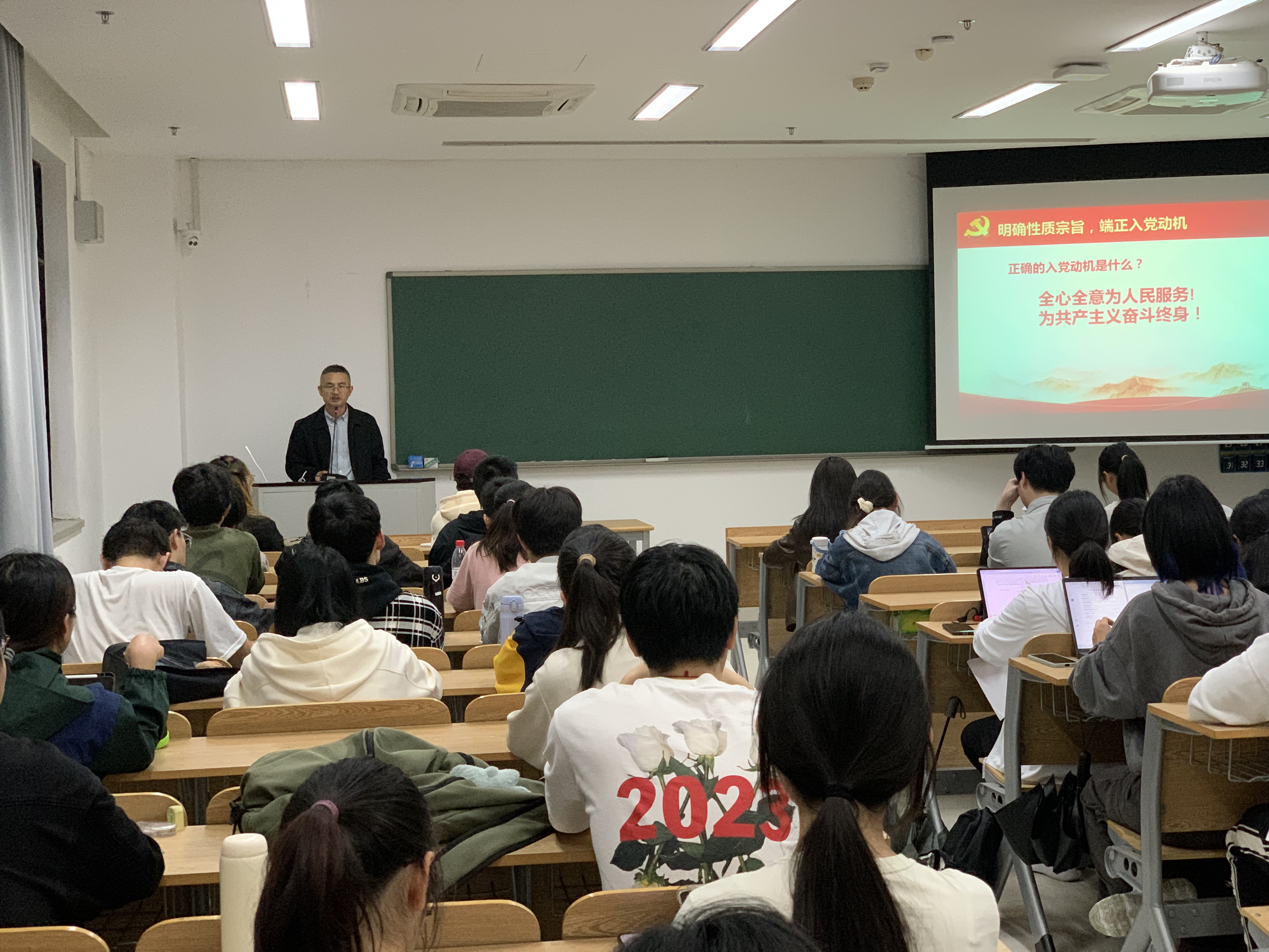 苏老师以“坚定信念,勇担使命,争做合格中国共产党党员”为主题,紧扣入党积极分子的入党动机这一核心,深入浅出地阐述了党的性质与宗旨。他强调,真正的入党不仅要在形式上加入党的组织,更要在思想上、行动上实现与党的全面融合,做到真正的“思想入党、行动入党、组织入党”。苏老师通过生动的历史事例,向积极分子们展示了建国以来无数共产党员为民族复兴做出的巨大牺牲和不懈努力,展示了中国共产党在革命、建设、改革等多个时期所取得的伟大成就,正是在中国共产党的坚强领导下,国家才得以蓬勃发展,社会呈现出欣欣向荣的景象,作为入党积极分子,必须坚持中国共产党的领导。最后,苏老师向入党积极分子们提出了殷切期望:要坚定理想信念,不断加强党性修养,努力发挥模范带头作用,以实际行动践行共产党员的初心和使命。