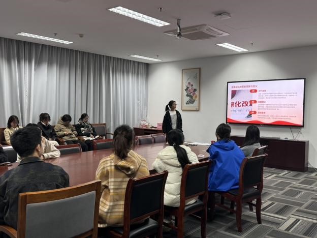 二是召开十一月党日活动,罗倩、顾米琪两位同学分享了她们学习“习近平总书记关于全面深化改革的新思想”的心得体会。罗倩同志认识到全面深化改革是中国共产党领导下的一项重要任务,加强党对进一步全面深化改革的领导是确保改革顺利推进的关键,并从“坚持党的全面领导”、“加强党中央的集中统一领导”、“提高党的领导水平和长期执政能力”、“深化党的建设制度改革”四个方面阐述加强党对进一步全面深化改革的领导的主要内容;顾米琪同志围绕“深入学习贯彻习近平总书记关于全面深化改革的新思想”、“发挥经济体制改革牵引作用,全面推进各领域改革”、“加强党对进一步全面深化改革的领导”三方面分享自己的学习心得。
