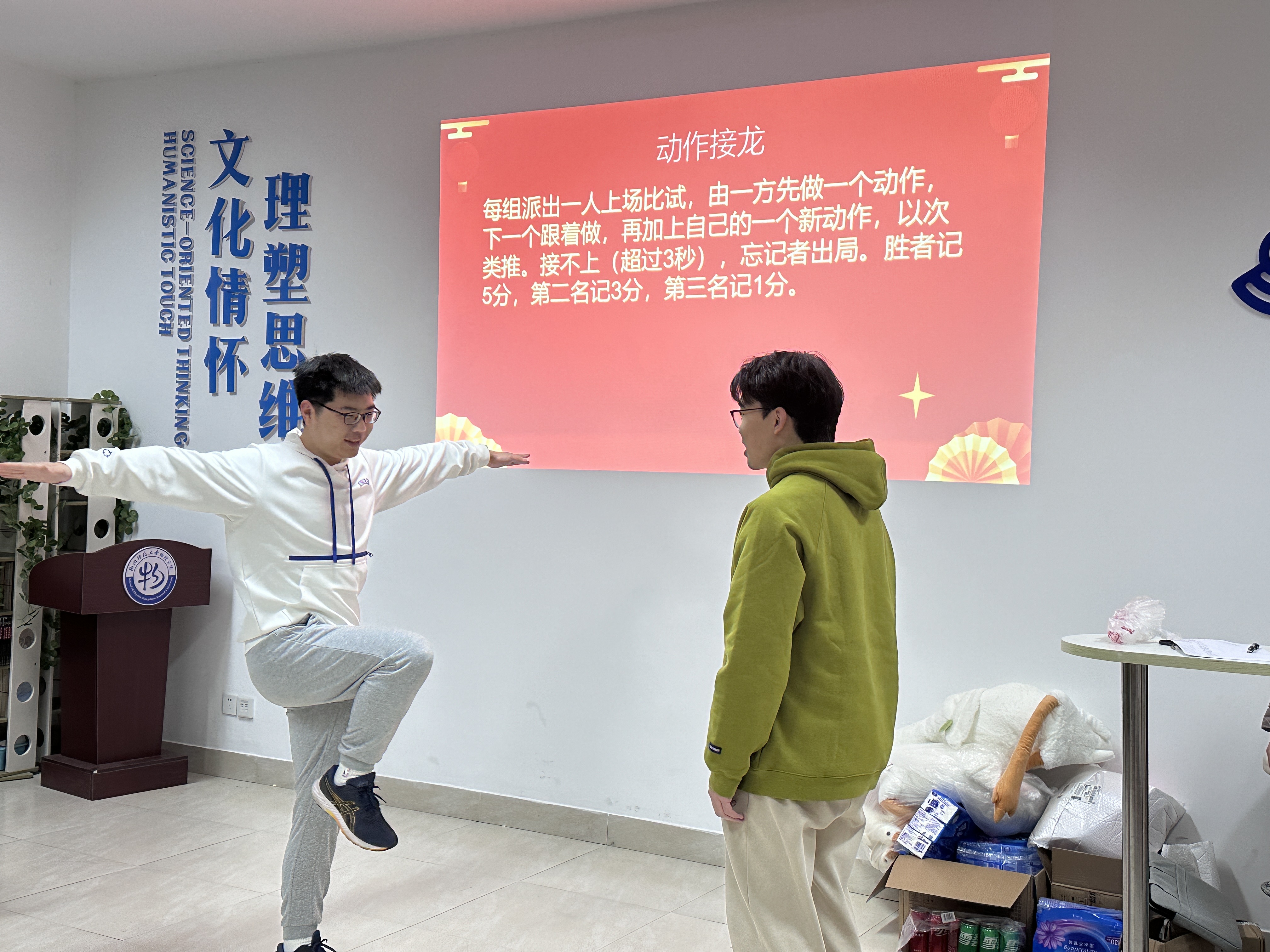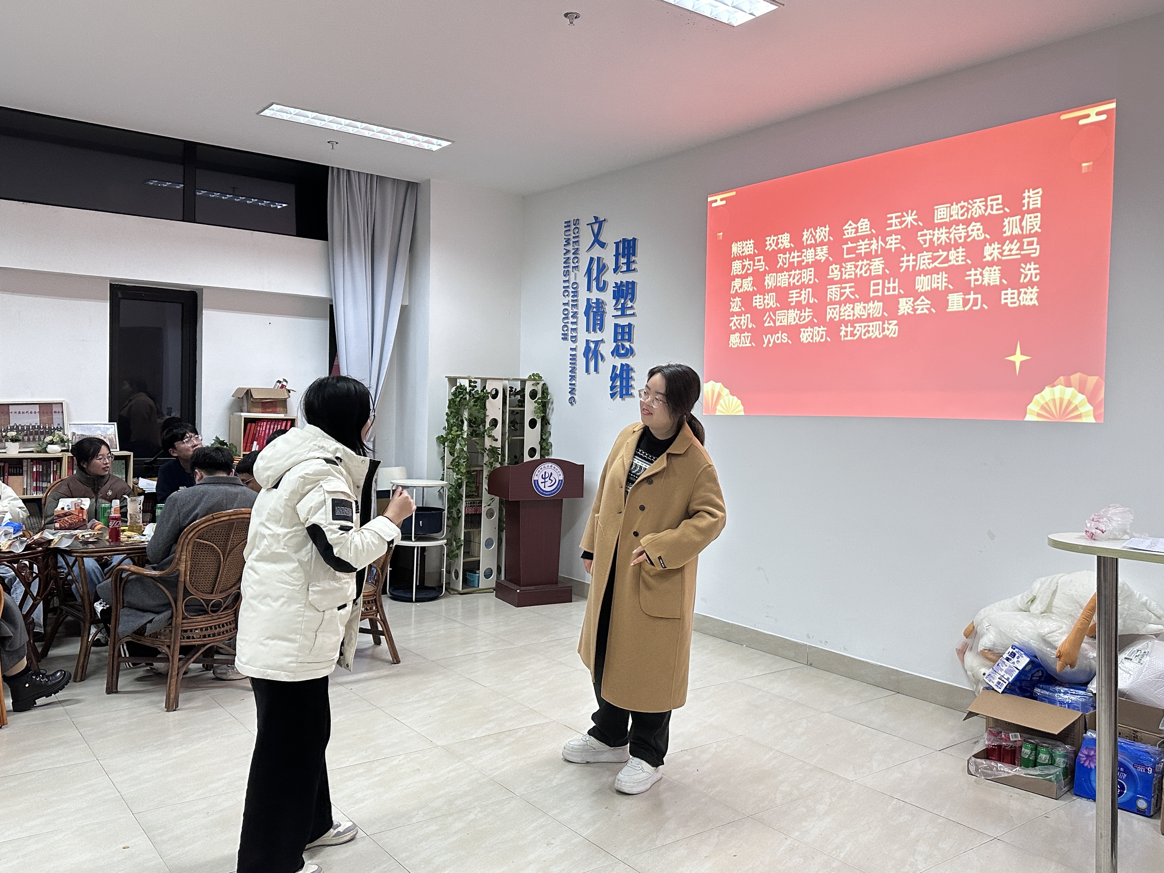 整场活动持续近两小时,节目表演环节中,各研究生自主报名,展现了他们的多才多艺。游戏环节,研究生们积极参与,“你画我猜”、“听歌识曲”、“谁是卧底”、“闹钟炸弹”等游戏,生动的表演加上特别的言语和动作,使得全场笑声不断。尽管室外是寒冷的冬夜,室内却是火热的联欢氛围。
