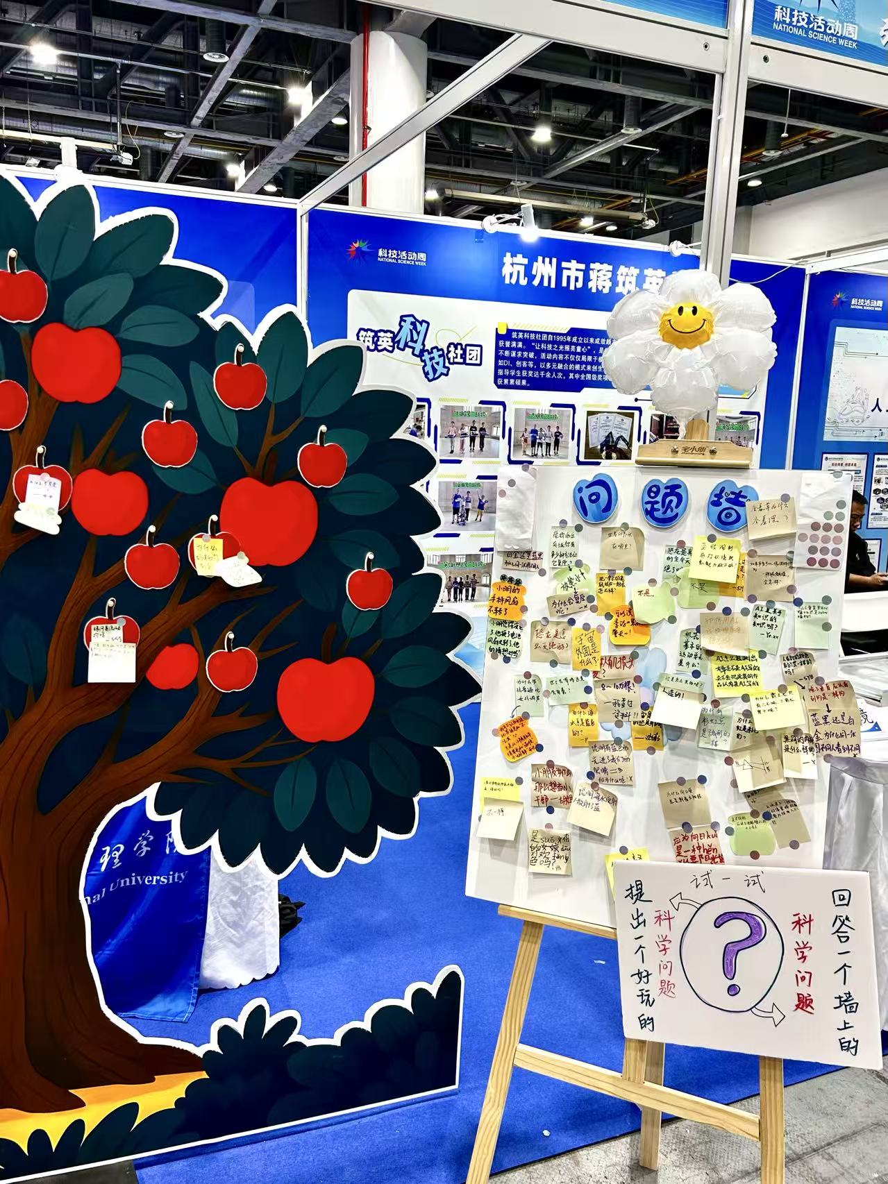 活动期间,黄色电影 科普团队将部分科普课程和活动资料进行了多形式的展示。最受欢迎的是“思辨墙”,科普团队把即将出版的科普书《从观察一棵树开始的科学思维课》进行巧妙转化,打造出了现场互动项目“思辨墙”。这面墙不仅是知识的展示,更是一个充满挑战与乐趣的思辨空间。站在“思辨墙”前的观众,无论是懵懂好奇的孩童,还是充满探索欲的学生,亦或是积极学习新知识的成年人,都能在这里碰撞出思维的火花。