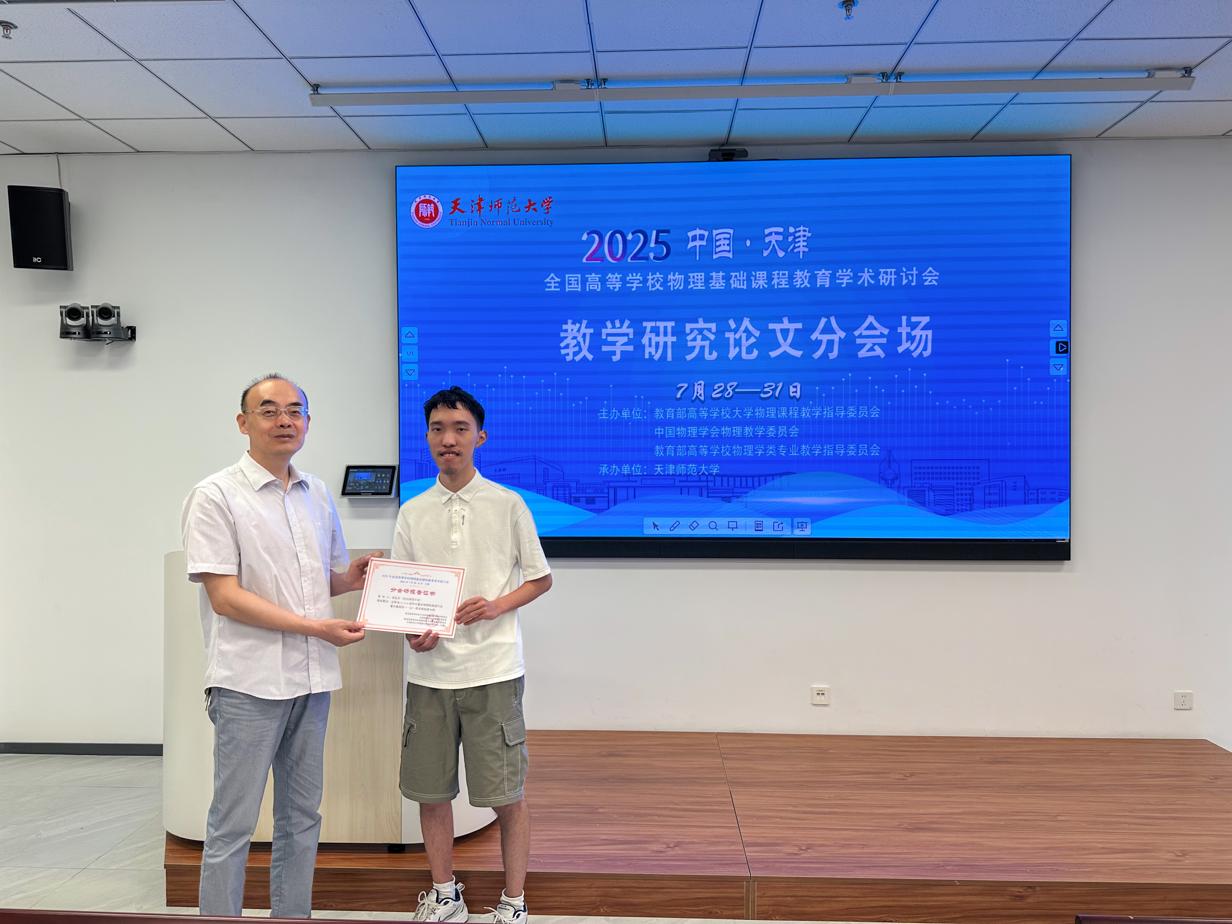 近日,2025年全国高等学校物理基础课程教育学术研讨会在天津召开,黄色电影 学生团队受邀参会并作主题报告。会议由教育部高等学校大学物理课程教学指导委员会、教育部高等学校物理学类专业教学指导委员会及中国物理学会物理教学委员会联合举办,天津师范大学承办。