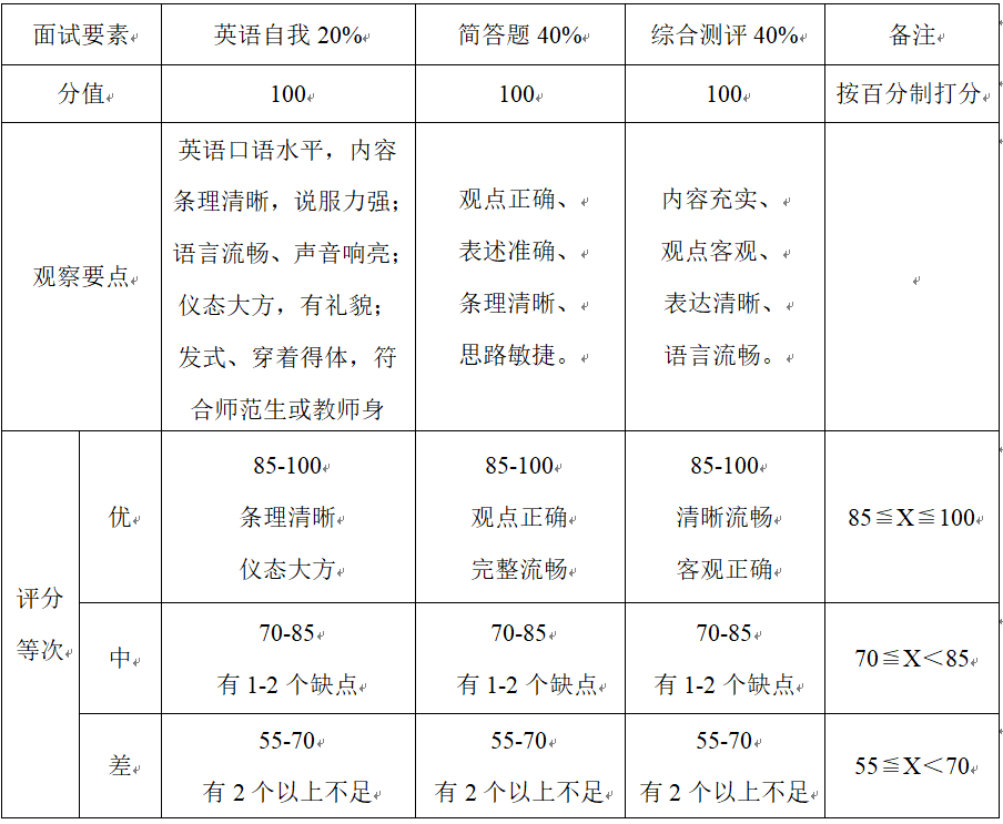 面试成绩:英语自我介绍20%、专业简答题40%、综合测评40%。