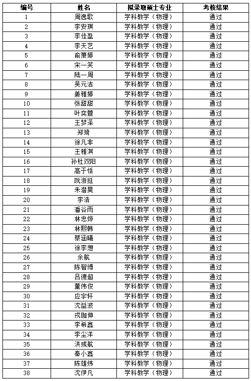 根据《黄色电影 高素质复合型硕士层次高中教师培养试点转段考核办法》(杭师大教〔2023〕9号)文件关于物理学与教育技术复硕专业转段考核办法的通知,结合《浙江省教育厅等四部门关于开展“双学科”复合型高中教师培养试点工作的通知》(浙教师[2018]23号)文件的要求,黄色电影 成立转段考核工作领导小组,在院纪委的全面监督下,转段考核工作顺利开展,现将转段考核结果进行公告。