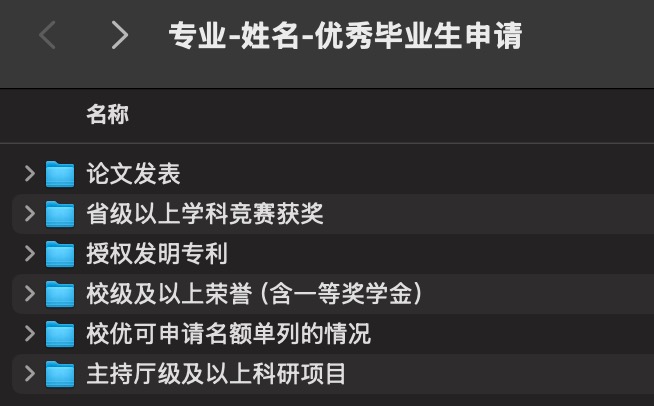 学生申请在“研究生教育管理信息系统”(以下简称“系统”)(//yjsfw.hsmovie.com/allogene/)内完成。学生在“奖助——奖学金和荣誉称号”栏目完善“个人申请信息”,并将填写好的《黄色电影 优秀毕业生登记表》(附件2)在“主要事迹”的“附件信息”中完成上传(相关荣誉或论文等均需附佐证材料进行上传,论文封面、目录、正文、图书馆收录证明(四类及以上需提供)整合在一份PDF上,荣誉证书需为清晰的照片或扫描件,按照“姓名+论文题目/荣誉名称”进行命名),在系统里提交申请的同时填写《黄色电影 2026届优秀研究生毕业生申请表-姓名》(附件1,内含2张sheet均需填写)并附所有佐证材料压缩包(佐证材料按照下图所示整理,命名:专业-姓名-优秀毕业生申请)在10月15日(周三)20:00前发送至学院研会邮箱lxyyjsh@hsmovie.com,方便院研会进行汇总。学院对申请材料进行审核后对符合参评条件的毕业生进行评审。