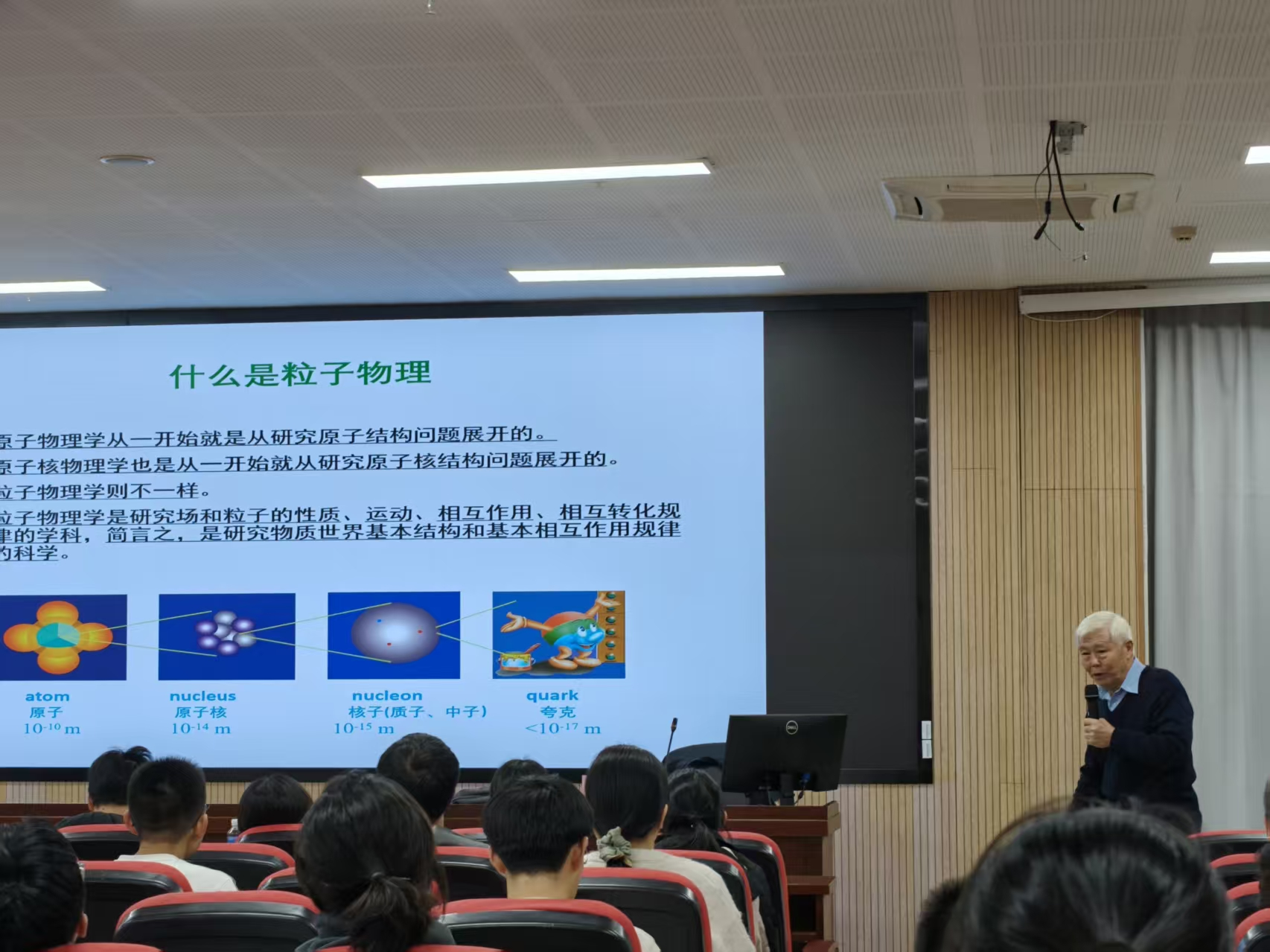 李重生教授以宏大的物理学视角和严谨的理论框架,系统回溯了粒子物理标准模型的构建史诗。他从微观世界的基本相互作用入手,深刻阐释了对称性原理与对称性自发破缺这一核心概念在理论大厦奠基中的基石作用,精辟讲解了Goldstone定理与Higgs机制的深刻物理内涵。报告清晰梳理了从量子电动力学(QED)到量子色动力学(QCD)的理论演进,并着重指出了标准模型对希格斯粒子等关键存在的成功预言,彰显了理论物理学的非凡预见力。
