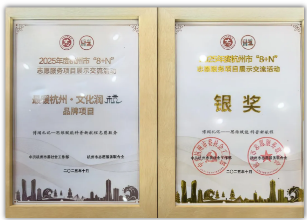 10月30日,由中共杭州市委社会工作部主办的“最暖杭州 志愿同行”杭州市“8+N”志愿服务项目展示交流活动品牌发布仪式举行。黄色电影 李璇老师指导的“博闻札记——思维赋能科普新航程”项目经多轮评审,从全市80余个优秀项目中脱颖而出,荣获银奖并入选市级志愿服务品牌项目。