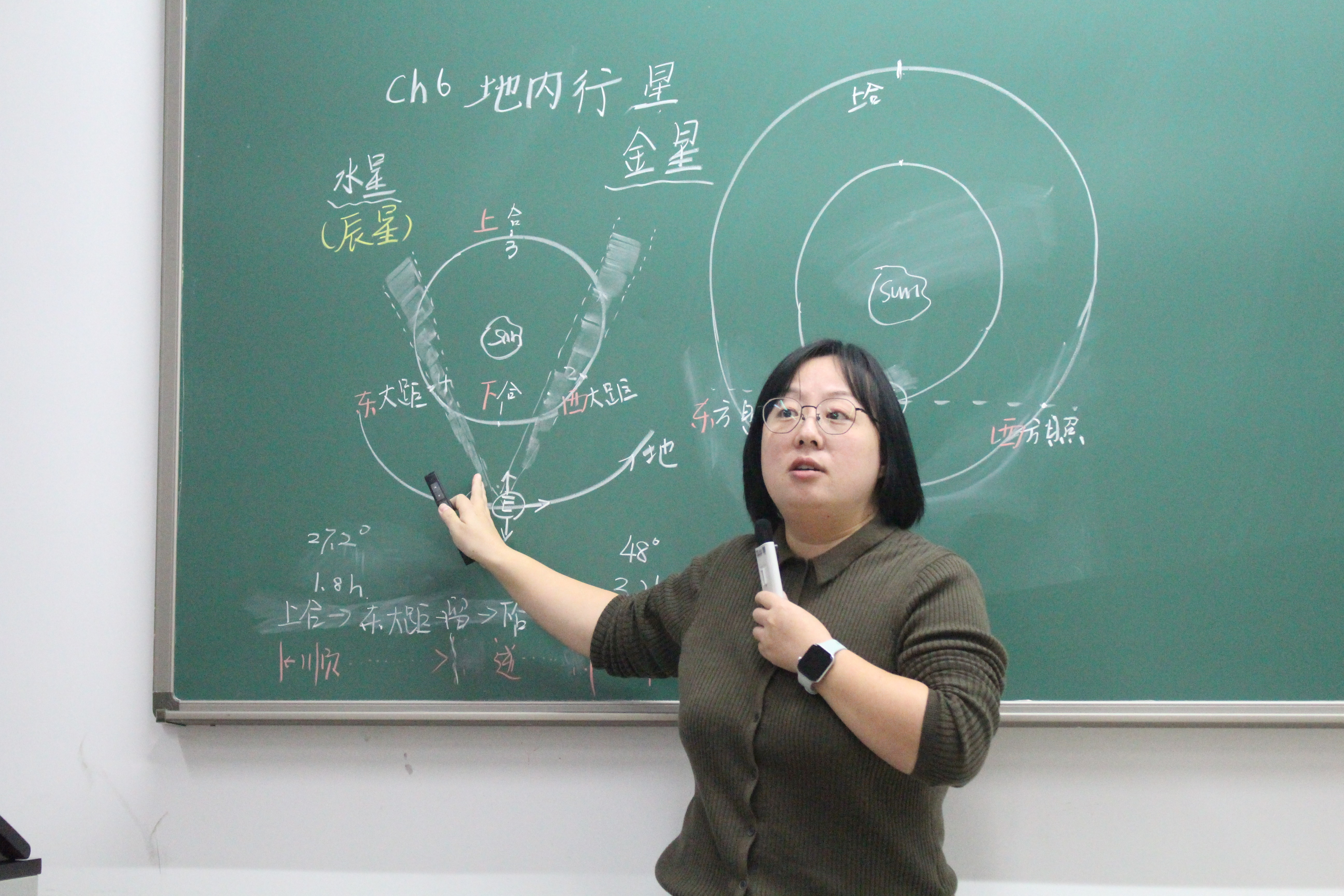 课程伊始,科教232班班主任贺喜老师以生动形象的讲授风格,带领同学们走进浩瀚宇宙。她围绕“内地行星的特征与演化”、“地球与月球的天体关系”等核心知识点,结合天文观测数据与趣味案例,将抽象的天体物理知识具象化,引导同学们探索宇宙的奥秘。课堂上同学们专注聆听、踊跃互动,在思辨与问答中深化理解,课堂氛围热烈而有序。